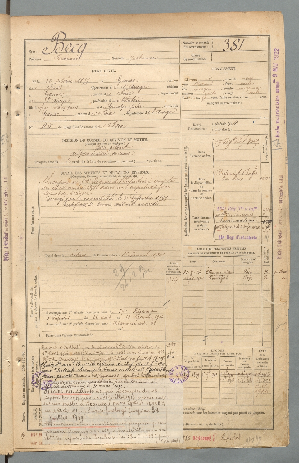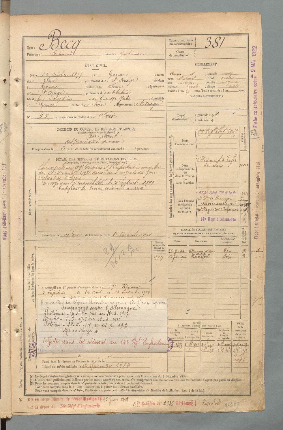 | Becq | Ferdinand dit Justinien | FOIX | 1 R 450 | 1897 | Ganac | Ganac | 381 |