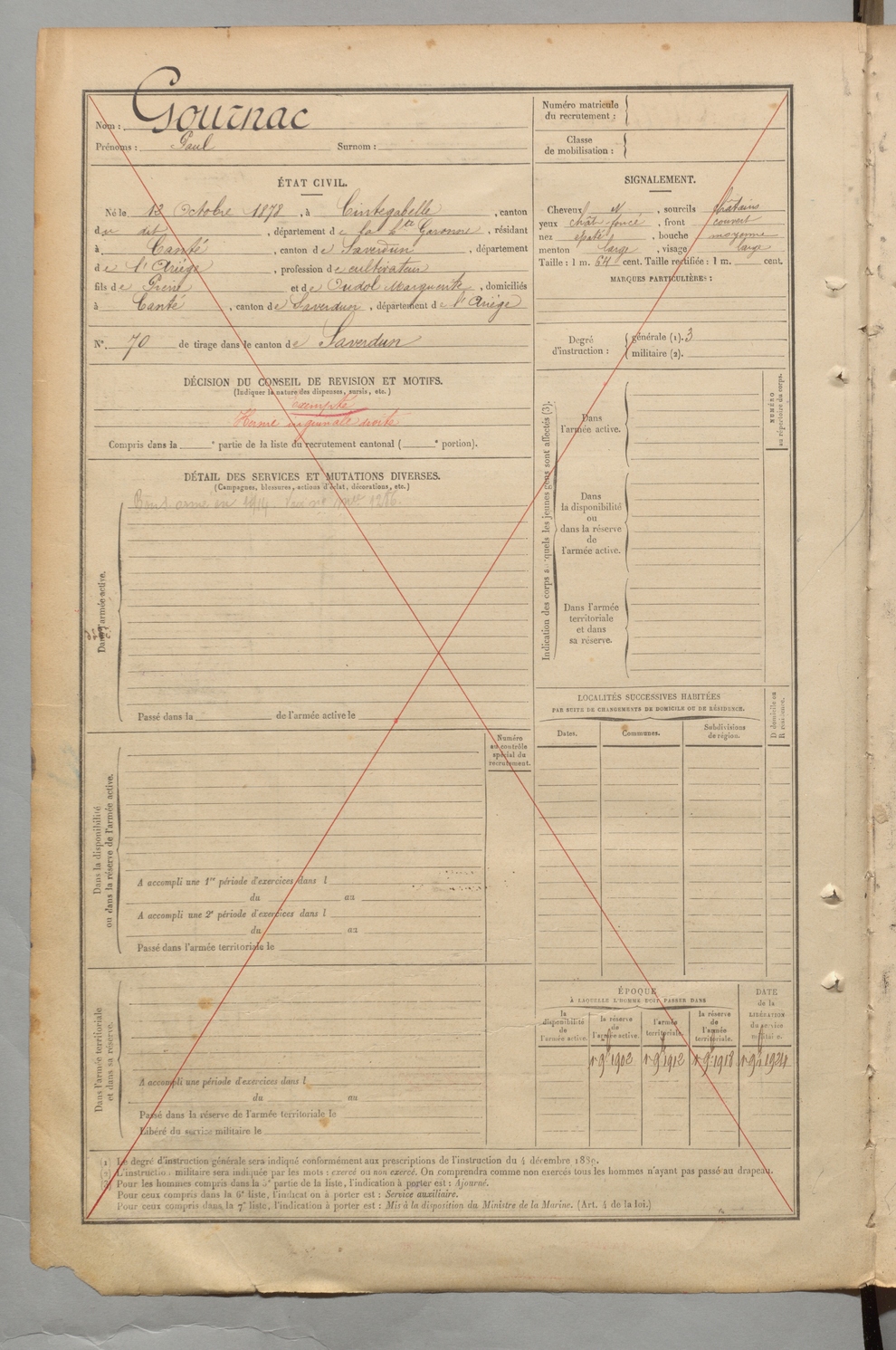 | Gournac | Paul | FOIX | 1 R 453 | 1898 | Cintegabelle | Canté | 3015 |