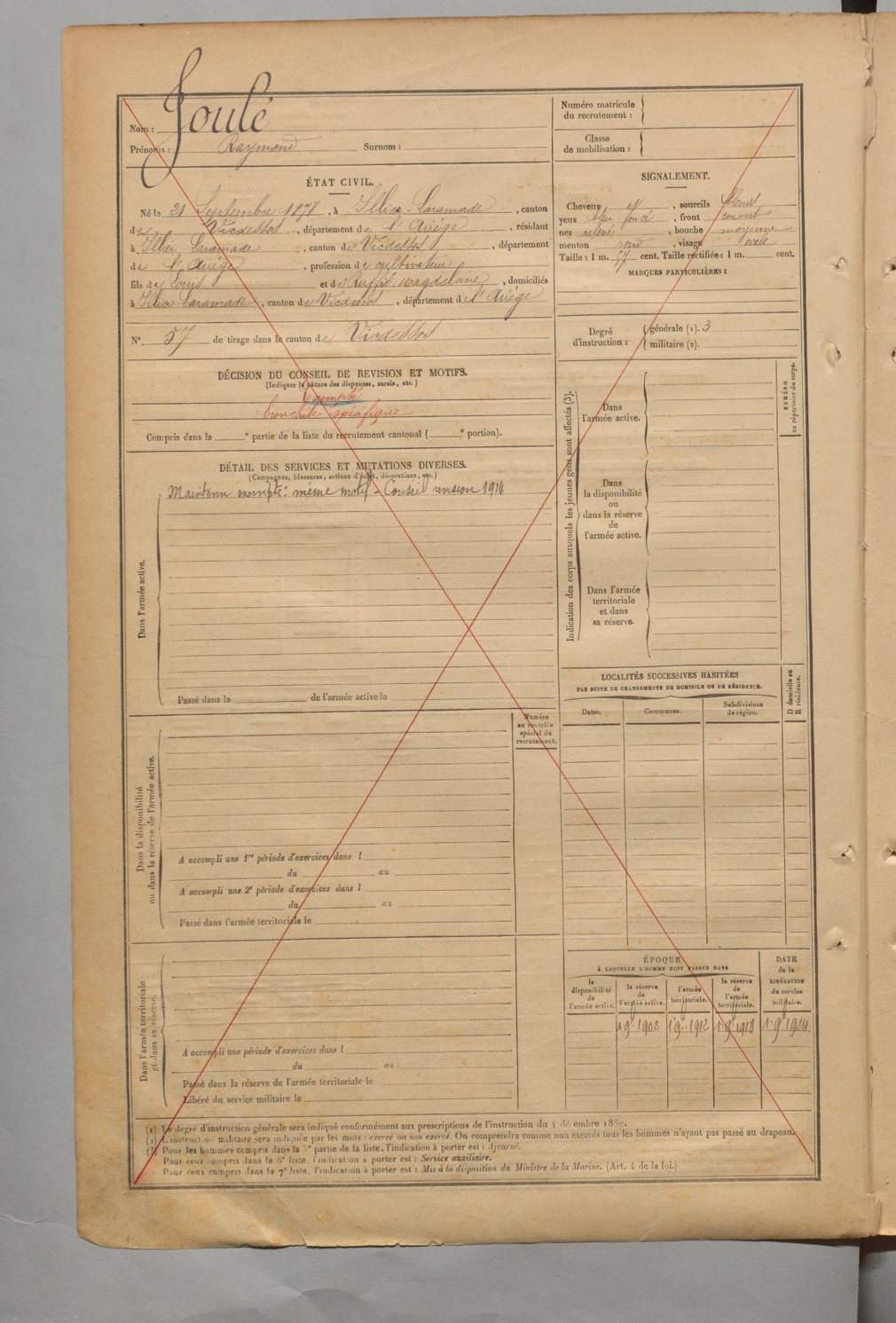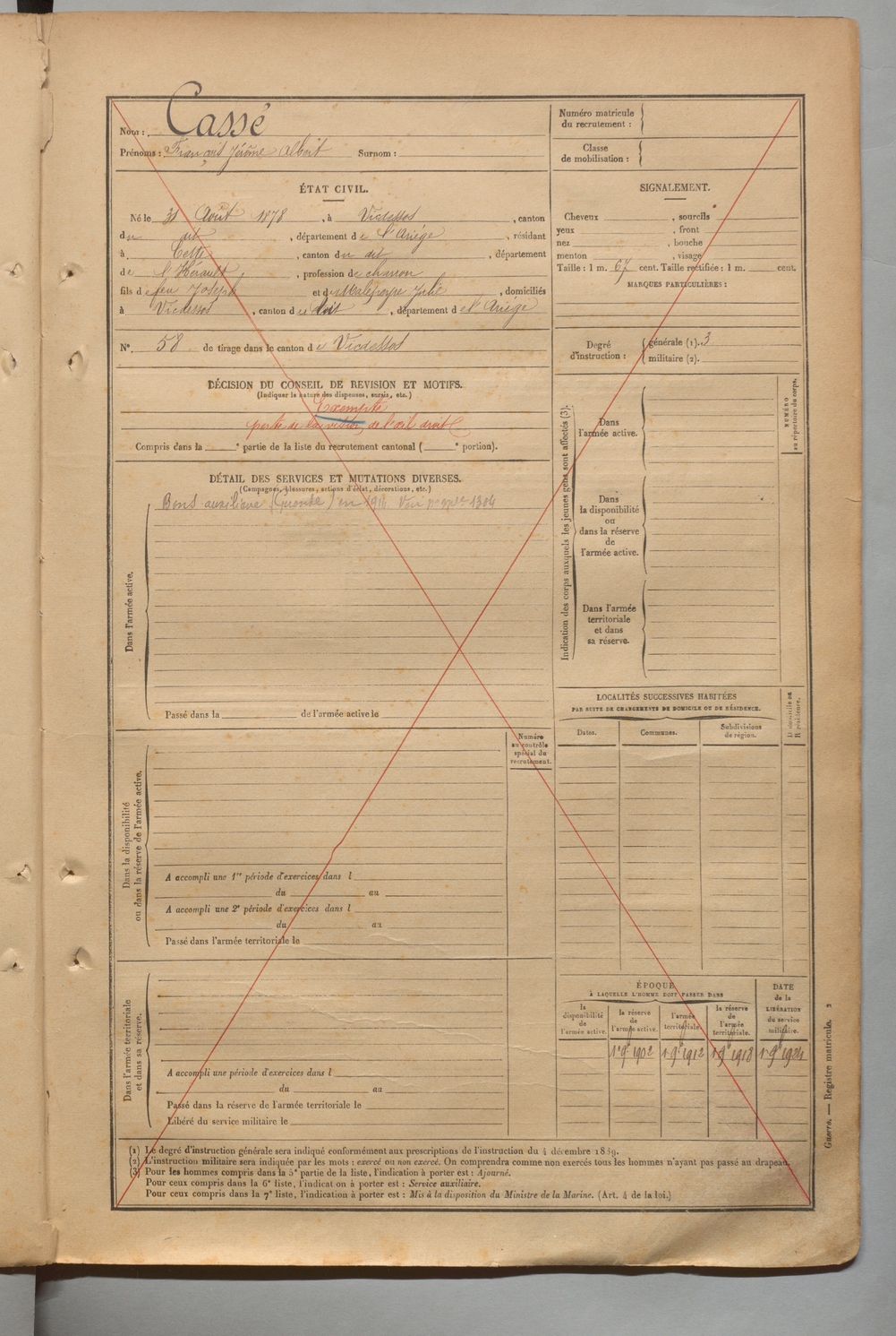 | Cassé | François Jérôme Albert | FOIX | 1 R 455 | 1898 | Vicdessos | Cette | 3015 |