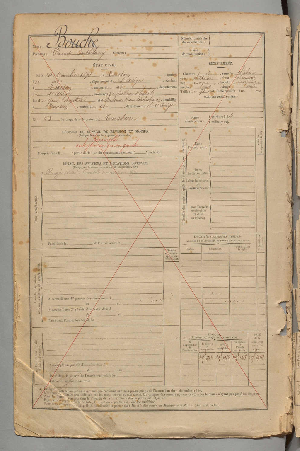 | Bouche | Clément Barthélemy | FOIX | 1 R 454 | 1898 | TaRascon | Tarascon | 3040 |