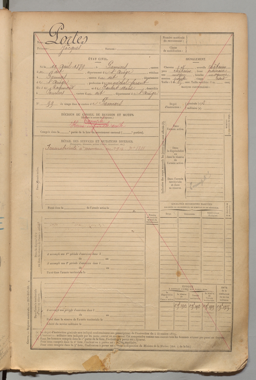 | Portes | Jacques | FOIX | 1 R 456 | 1899 | Pamiers | Pamiers | 0 |