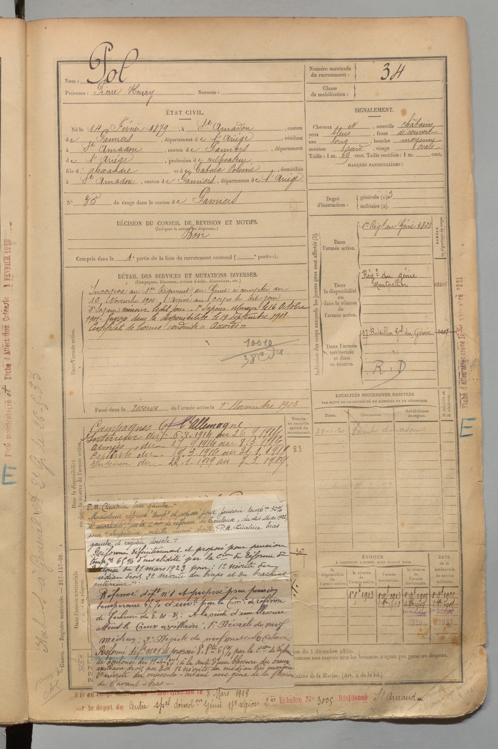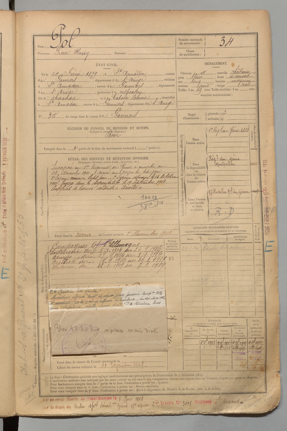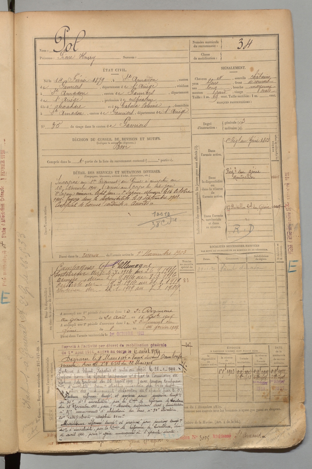 | Pol | Pierre Henry | FOIX | 1 R 456 | 1899 | Saint-Amadou | Saint-Amadou | 34 |