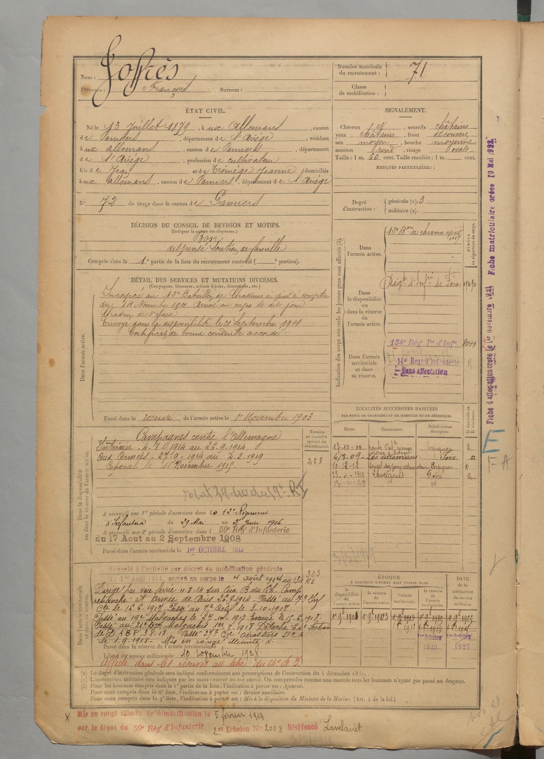 | Joffrès | François | FOIX | 1 R 456 | 1899 | Allemans (les) | Allemans (les) | 71 |