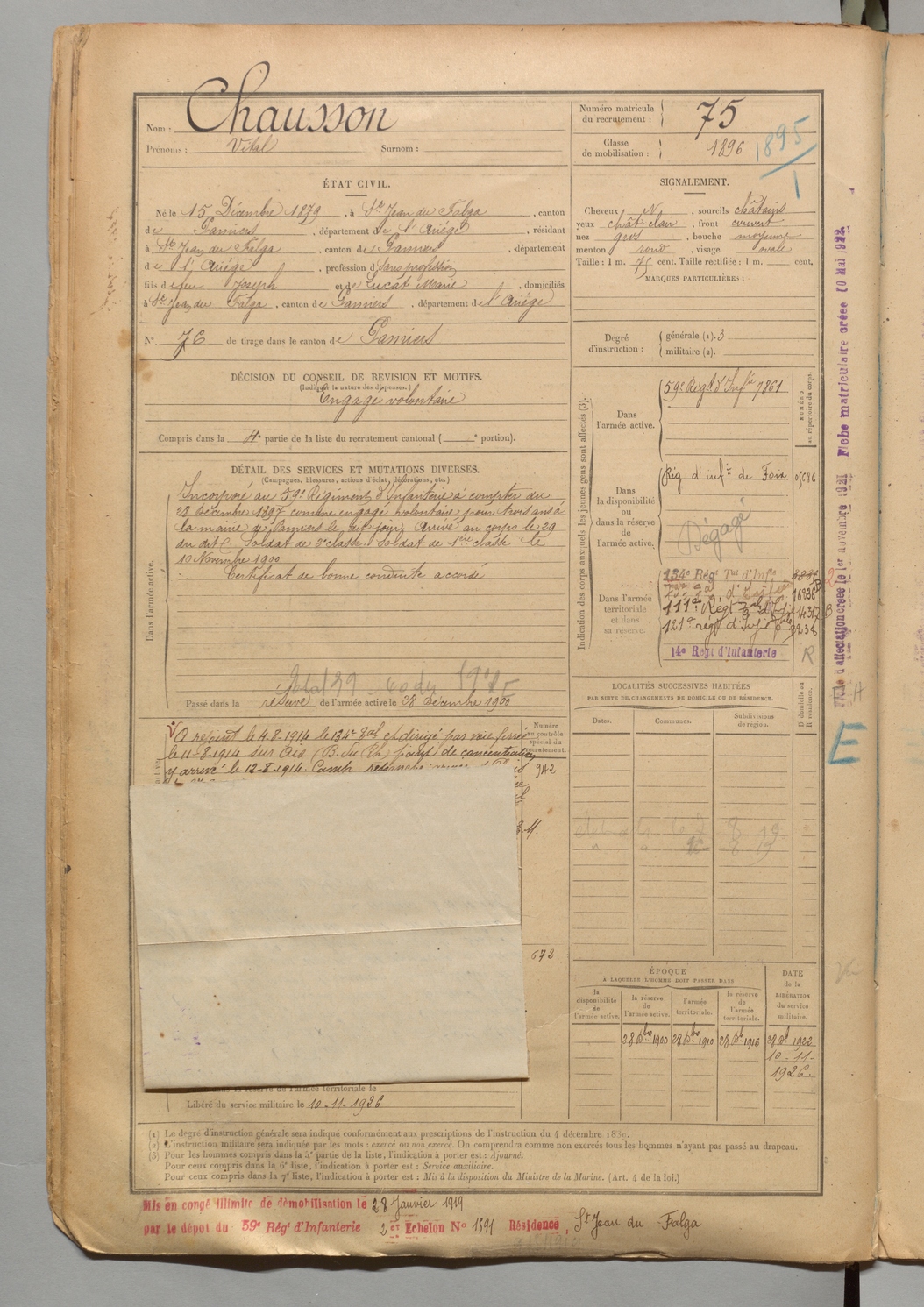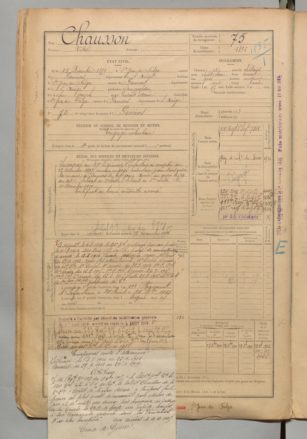 | Chausson | Vital | FOIX | 1 R 456 | 1899 | Saint-Jean-du-Falga | Saint-Jean-du-Falga | 75 |