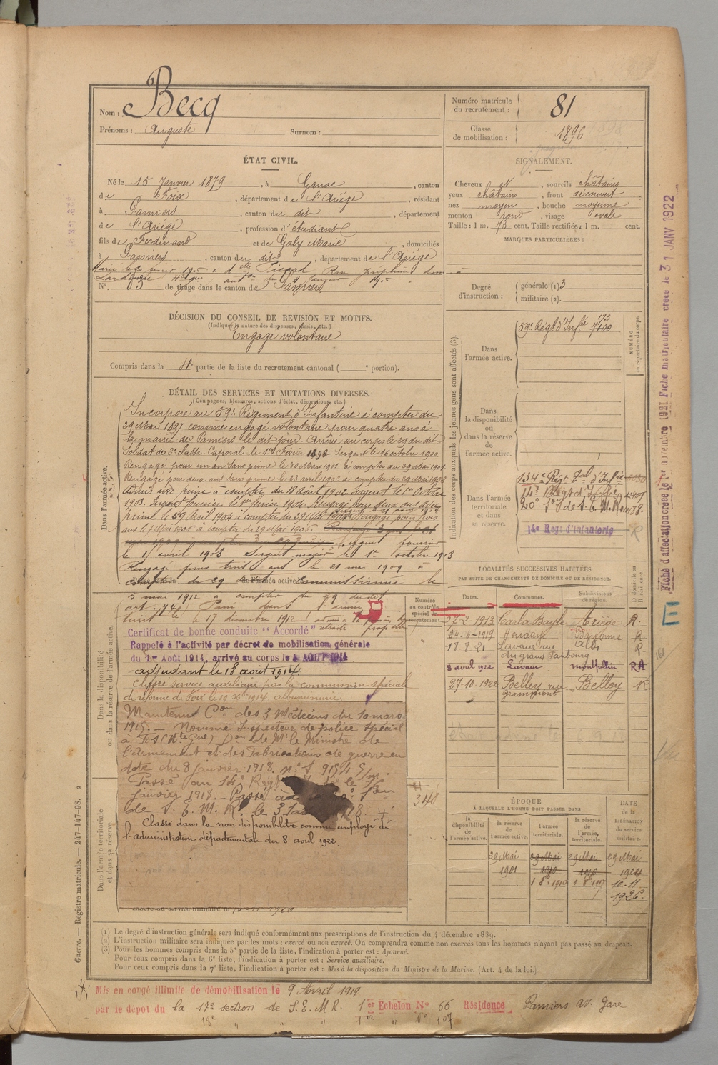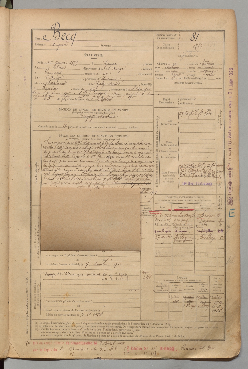 | Becq | Auguste | FOIX | 1 R 456 | 1899 | Ganac | Pamiers | 81 |