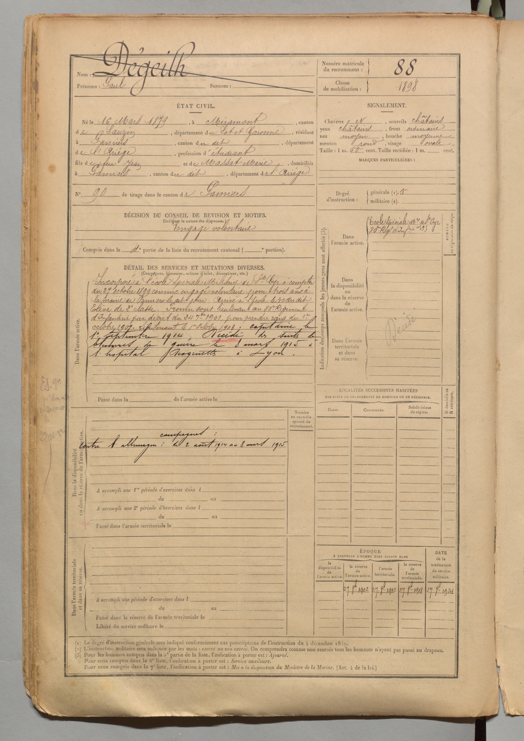 | Dégeilh | Paul | FOIX | 1 R 456 | 1899 | Miramont | Pamiers | 88 |