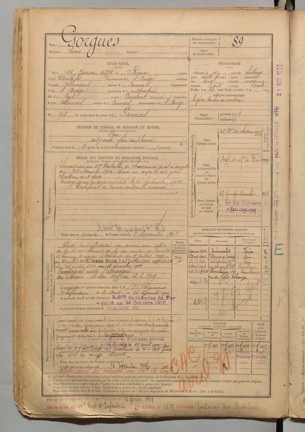 | Gorgues | Louis | FOIX | 1 R 456 | 1899 | Rieux-de-Pelleport | Allemans (les) | 89 |