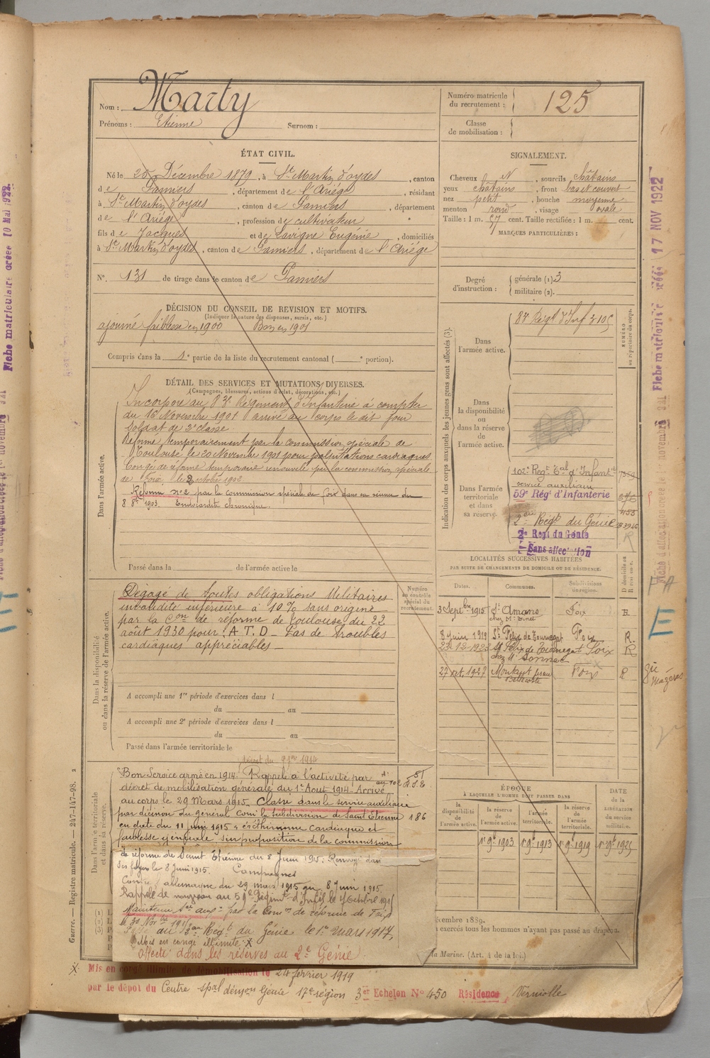| Marty | Etienne | FOIX | 1 R 456 | 1899 | Saint-Martin-d'Oydes | Saint-Martin-d'Oydes | 125 |