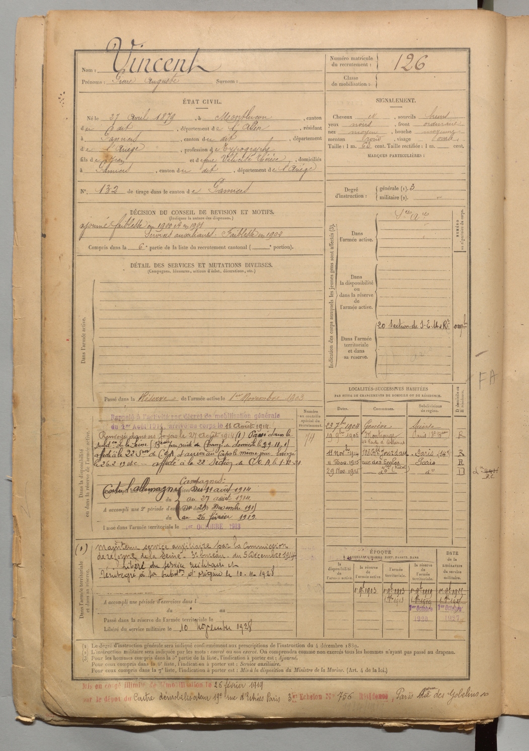 | Vincent | Pierre Auguste | FOIX | 1 R 456 | 1899 | Montluçon | Pamiers | 126 |
