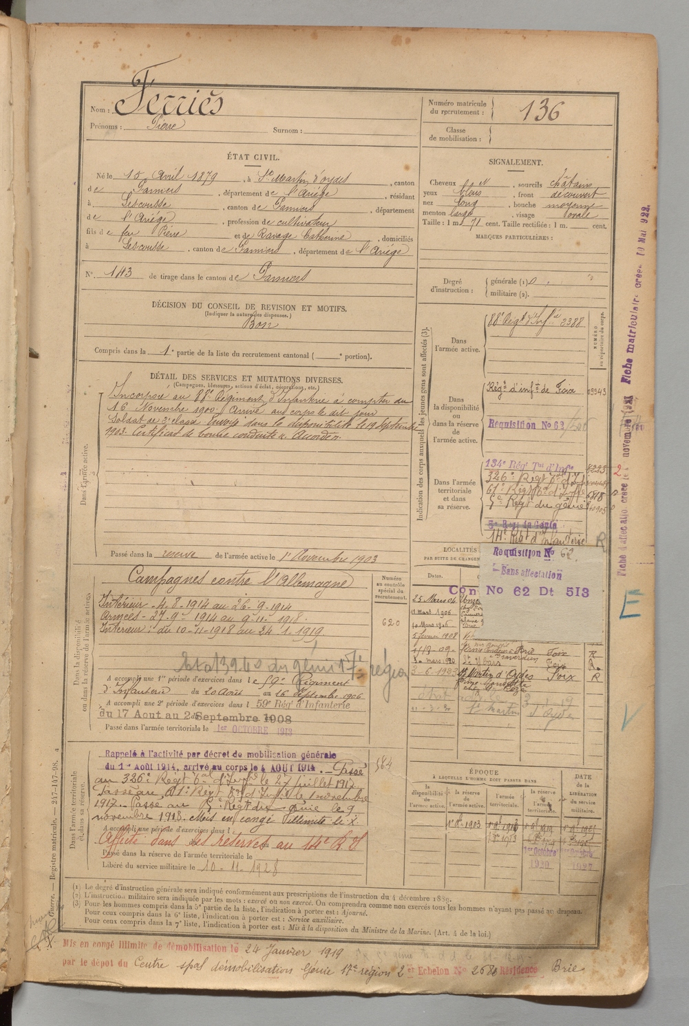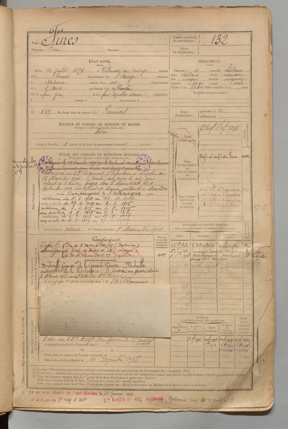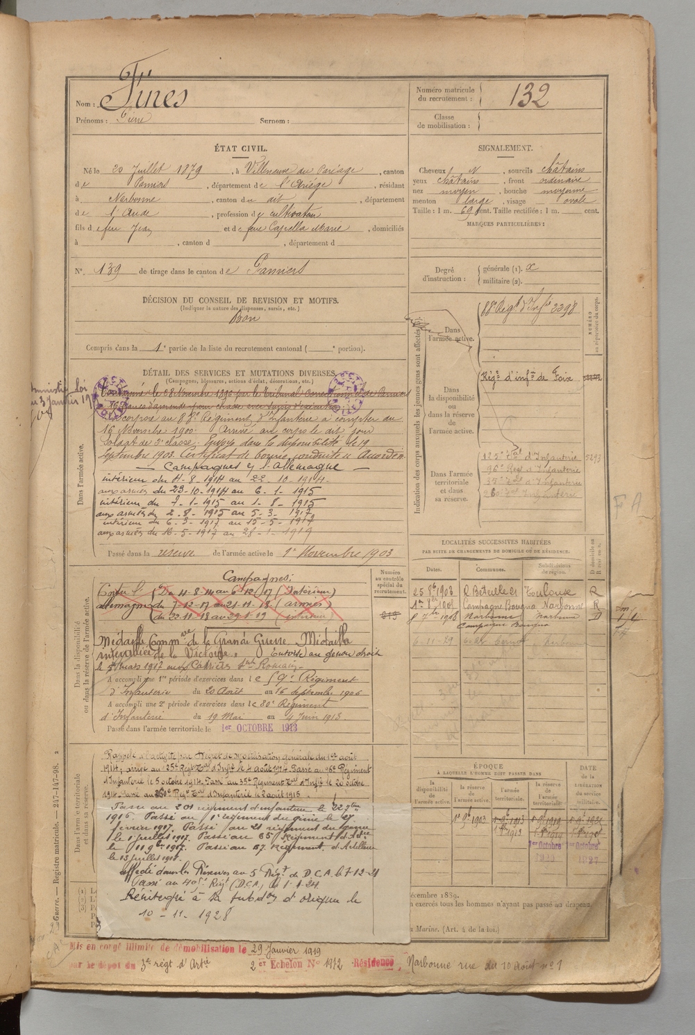 | Fines | Pierre | FOIX | 1 R 456 | 1899 | Villeneuve-du-Paréage | Narbonne | 132 |