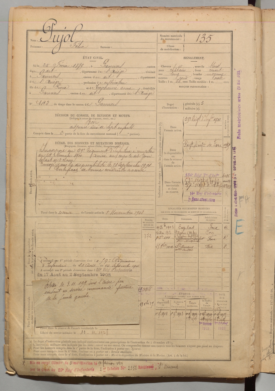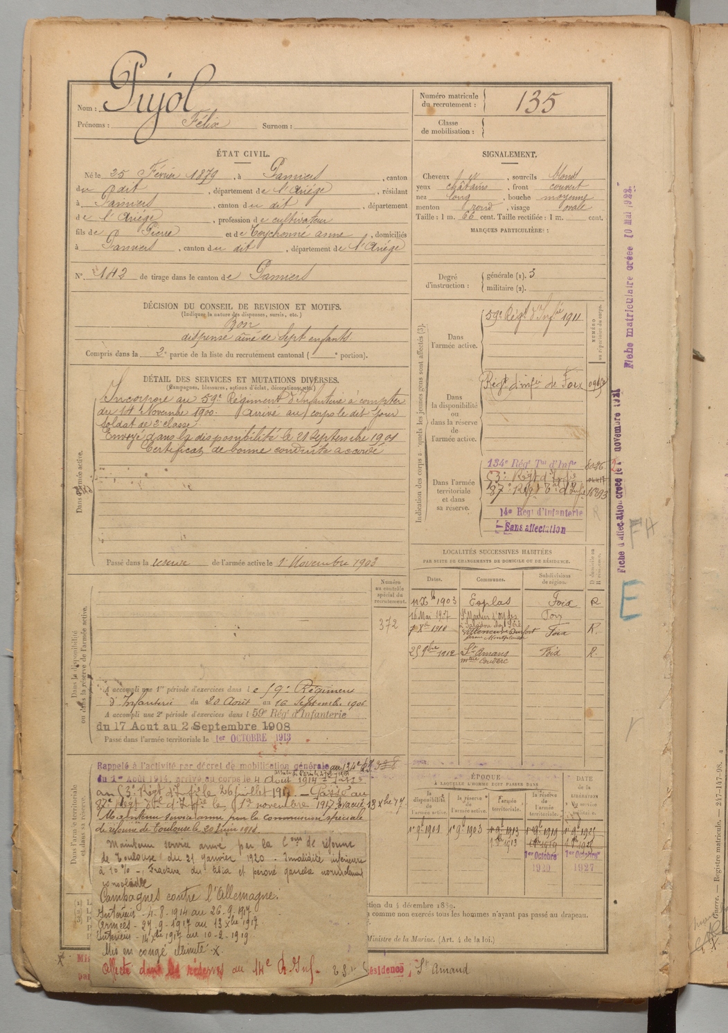 | Pujol | Félix | FOIX | 1 R 456 | 1899 | Pamiers | Pamiers | 135 |