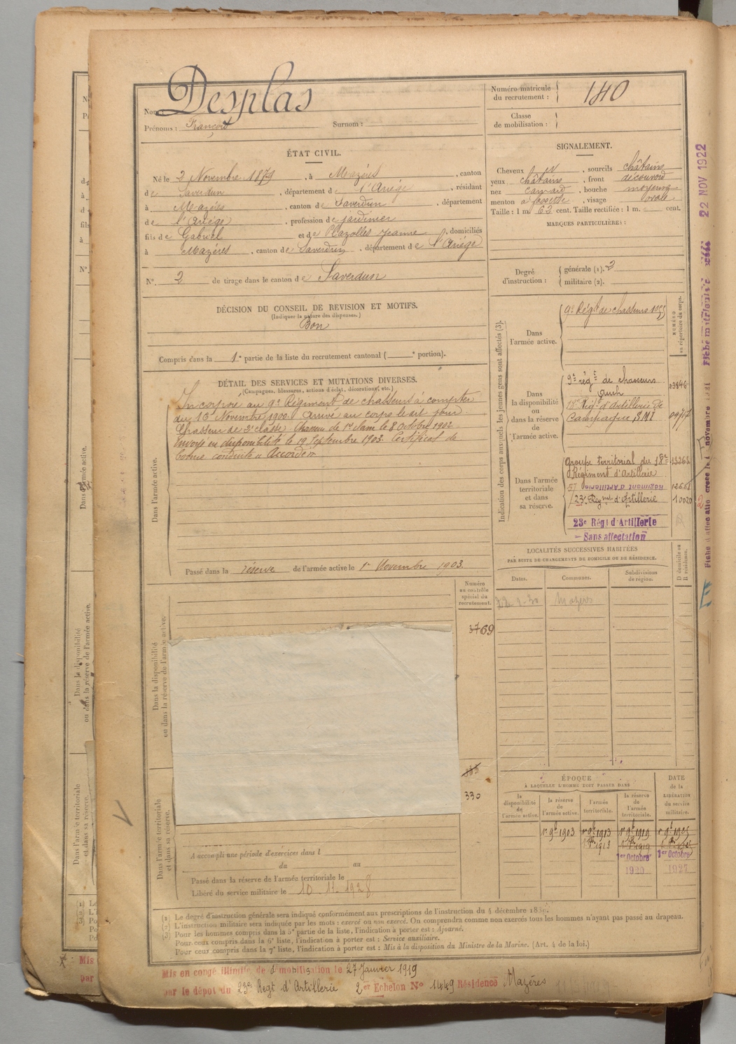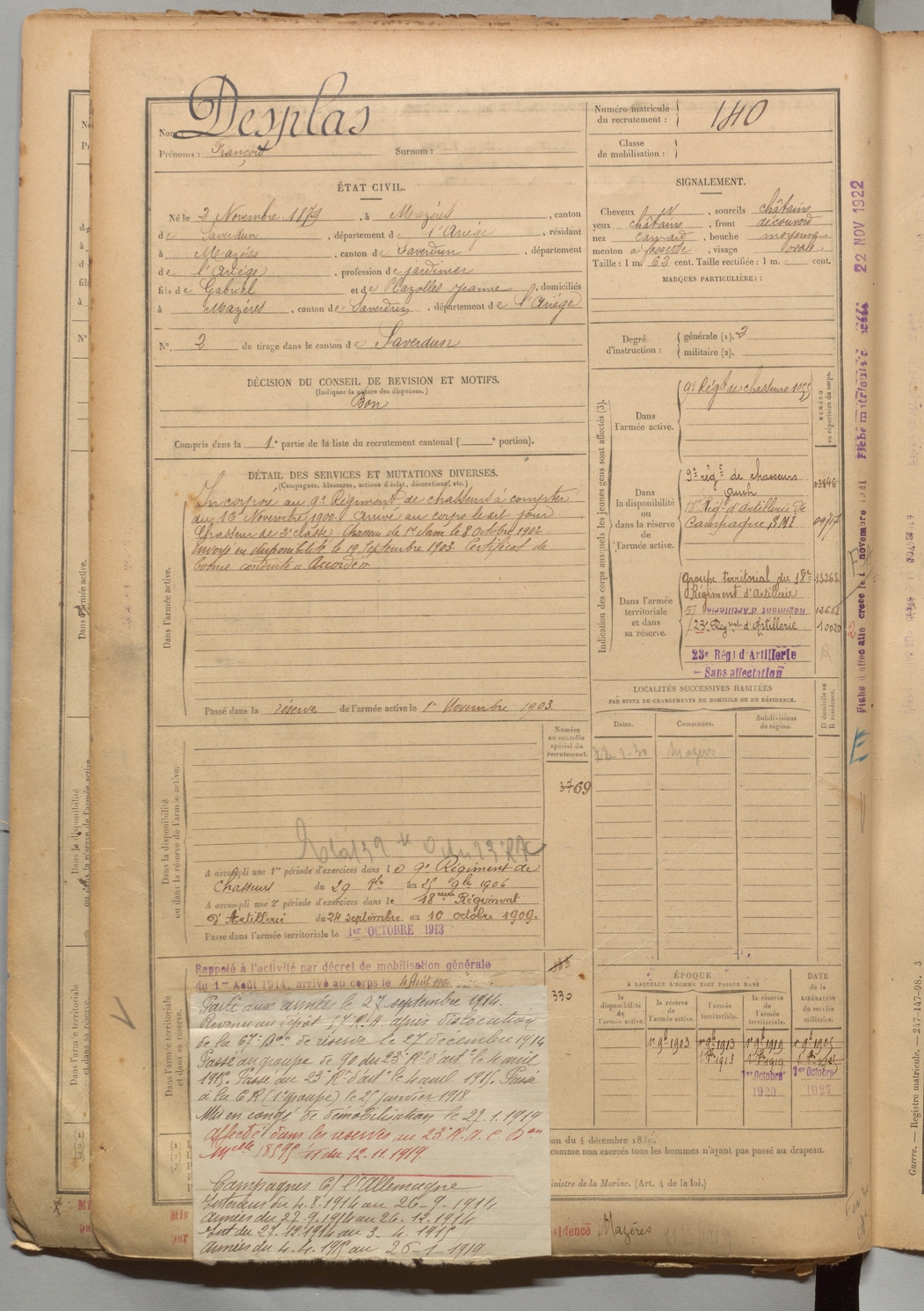| Desplas | François | FOIX | 1 R 456 | 1899 | Mazères | Mazères | 140 |