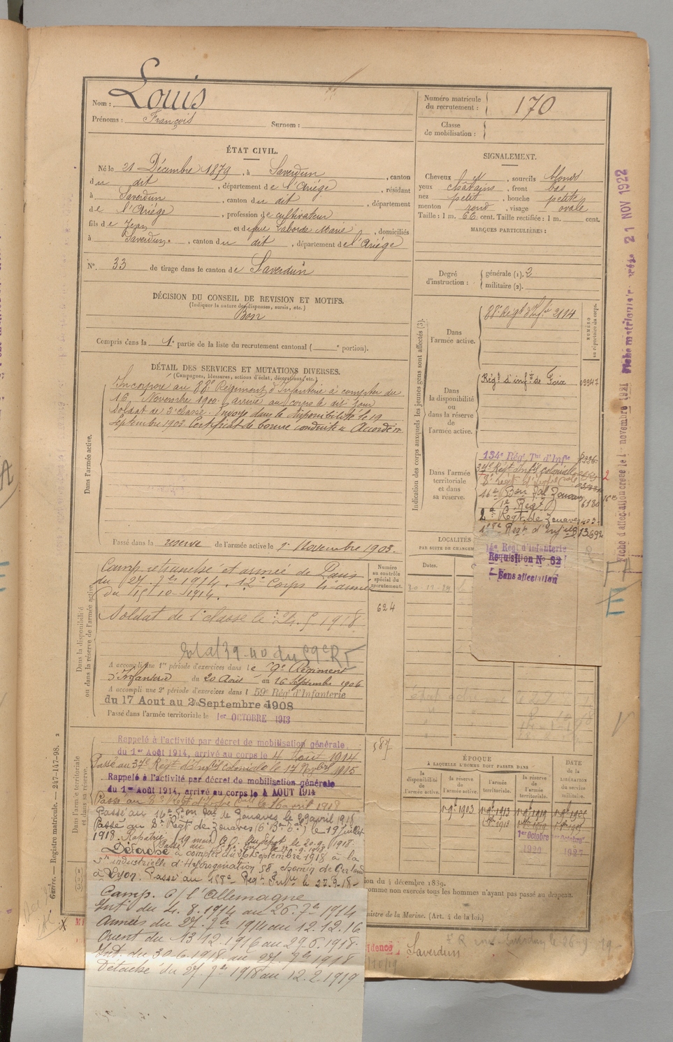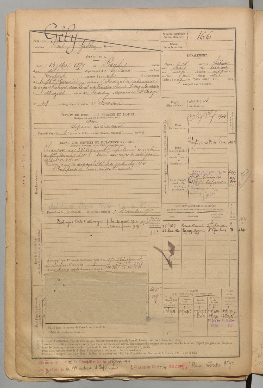 | Gély | Paul Gaston | FOIX | 1 R 456 | 1899 | Paris | Toulouse | 166 |