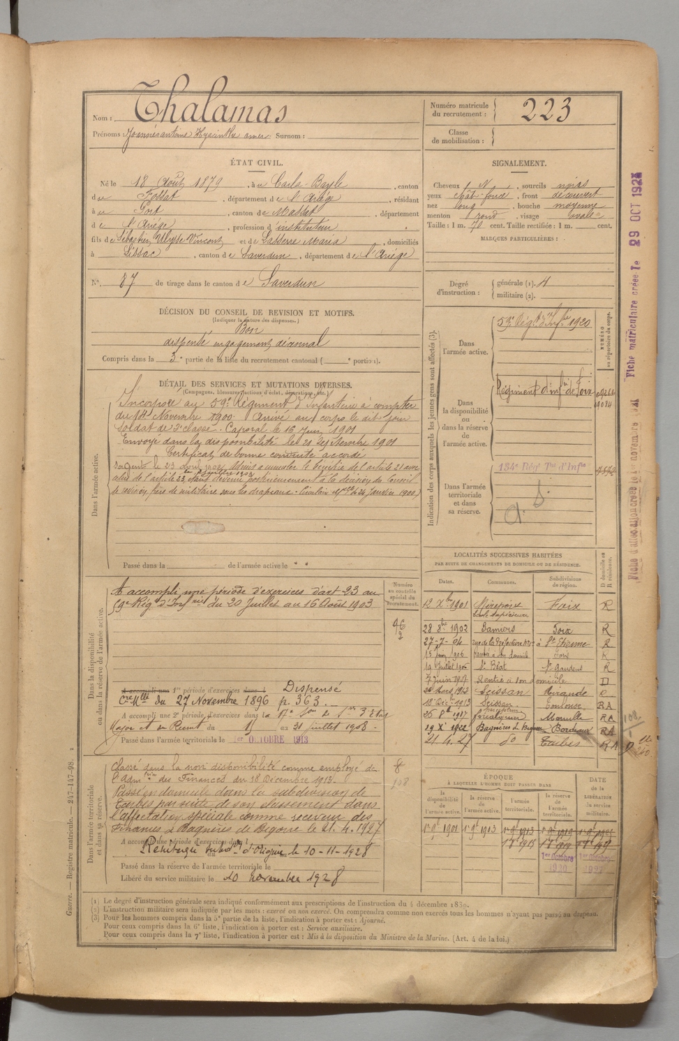 | Thalamas | Joannés Antoine Hyacinthe Omer | FOIX | 1 R 456 | 1899 | Carla-Bayle (Le) | Port (Le) | 223 |
