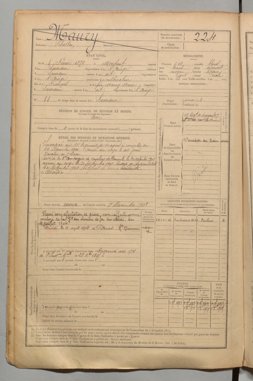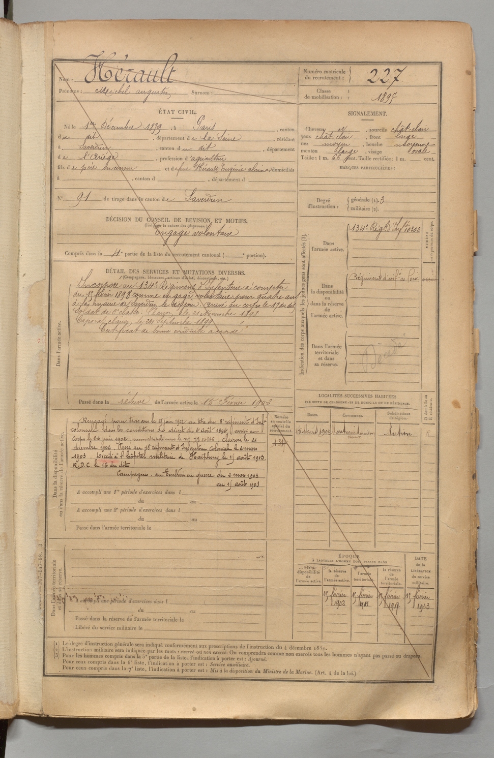 | Hérault | Michel Augustin | FOIX | 1 R 456 | 1899 | Paris | Saverdun | 227 |