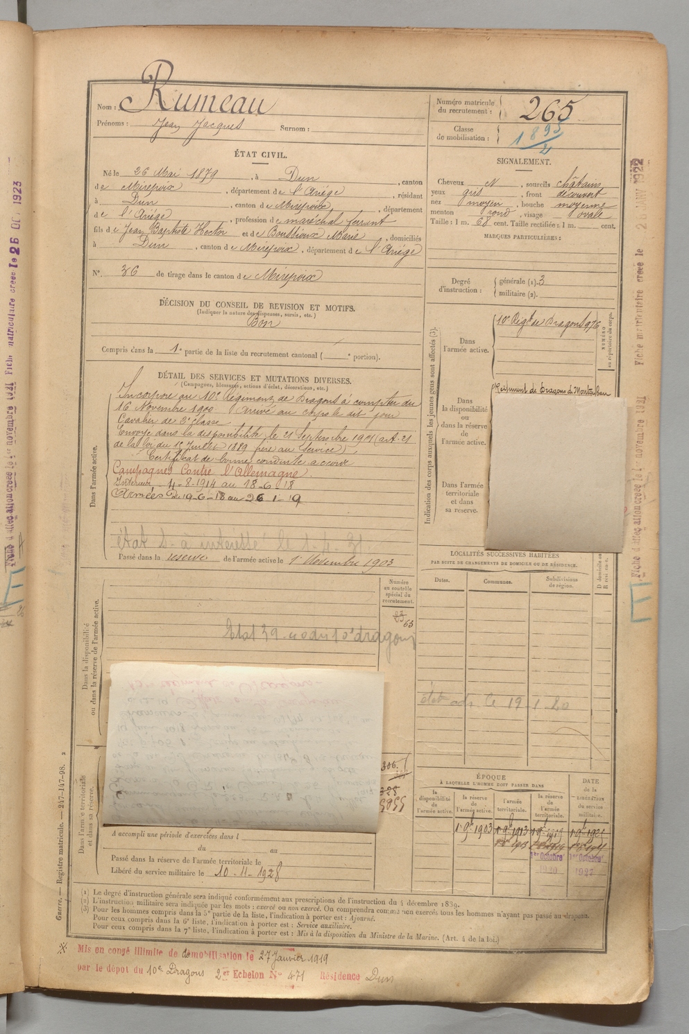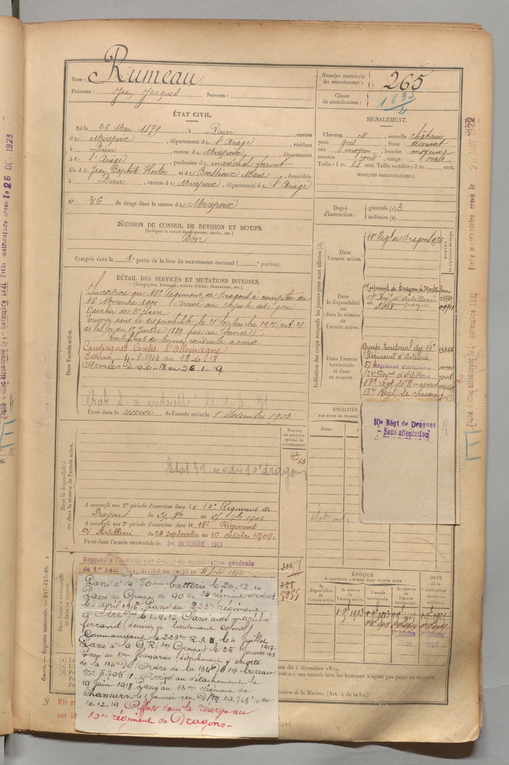 | Rumeau | Jean Jacques | FOIX | 1 R 456 | 1899 | Dun | Dun | 265 |