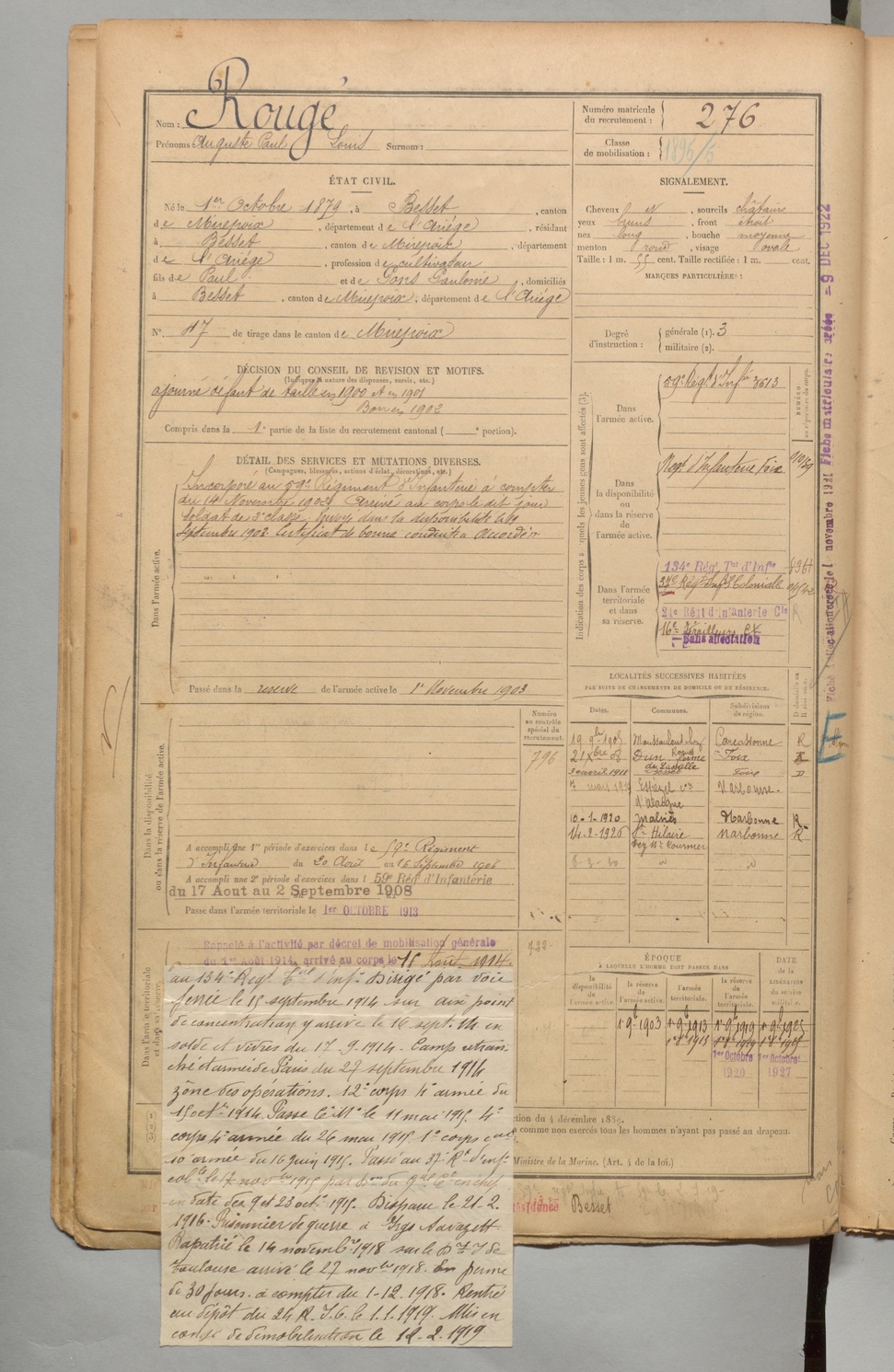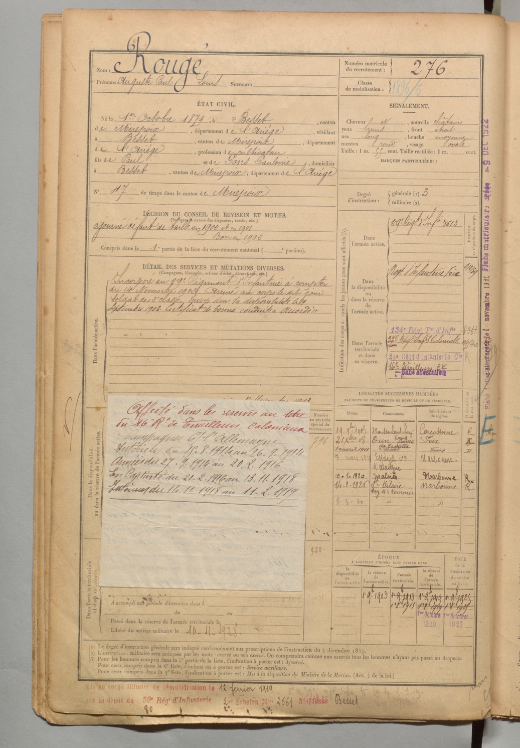 | Rougé | Auguste Paul Louis | FOIX | 1 R 456 | 1899 | Besset | Besset | 276 |