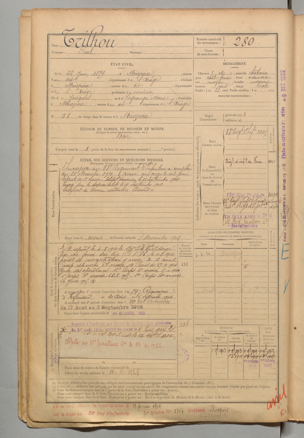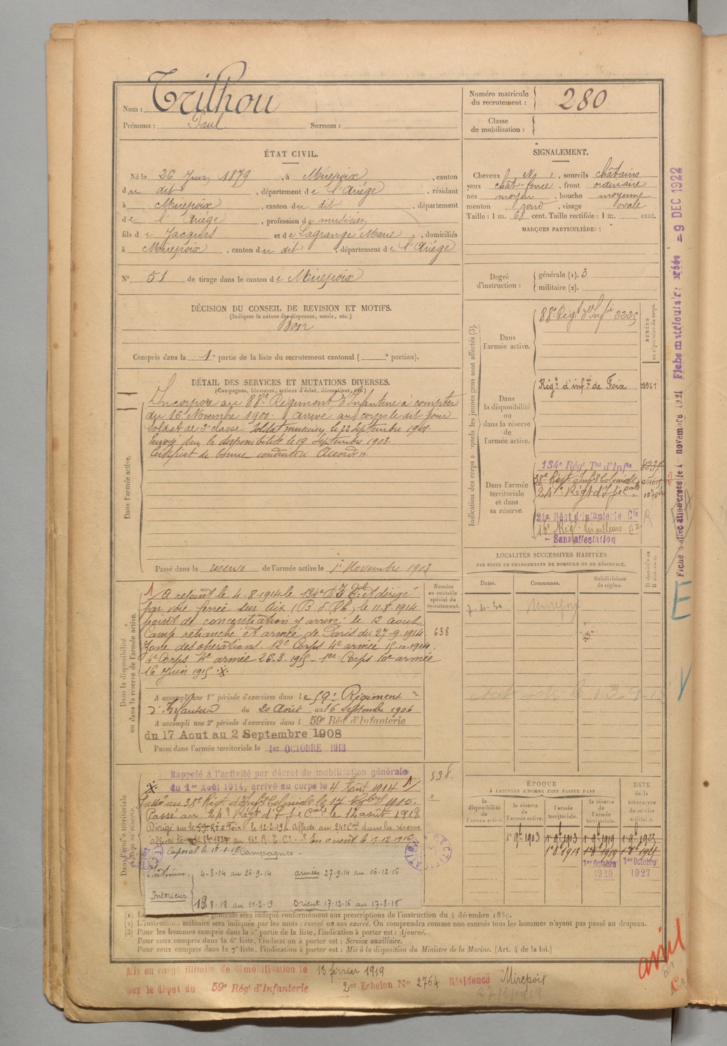 | Trilhou | Paul | FOIX | 1 R 456 | 1899 | Mirepoix | Mirepoix | 280 |