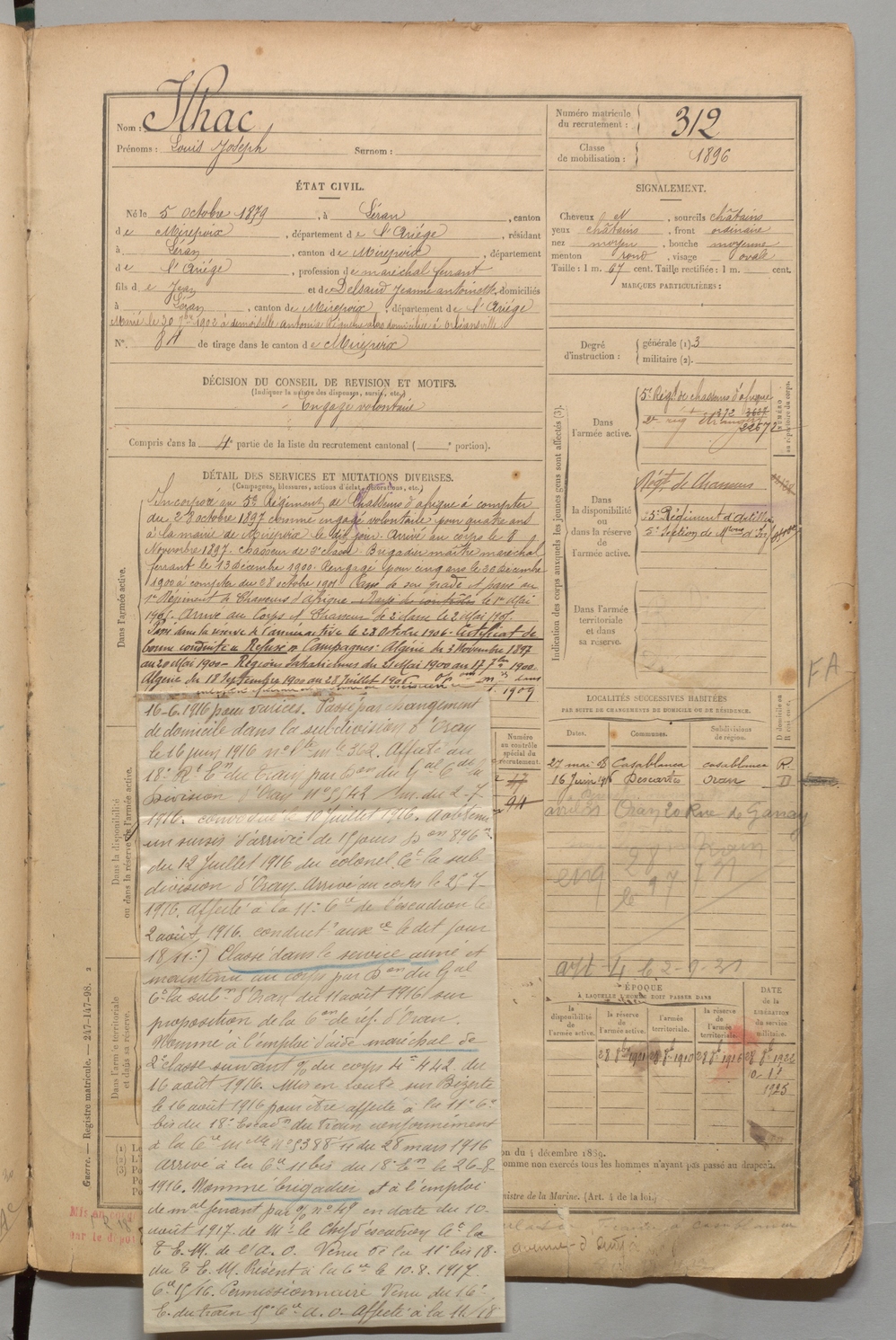 | Ilhac | Louis Joseph | FOIX | 1 R 456 | 1899 | Léran | Léran | 312 |