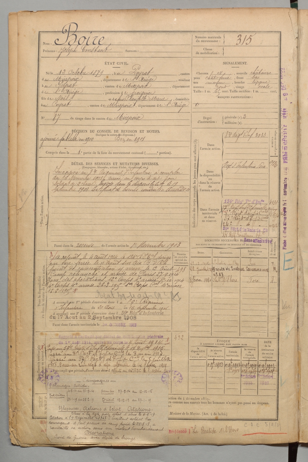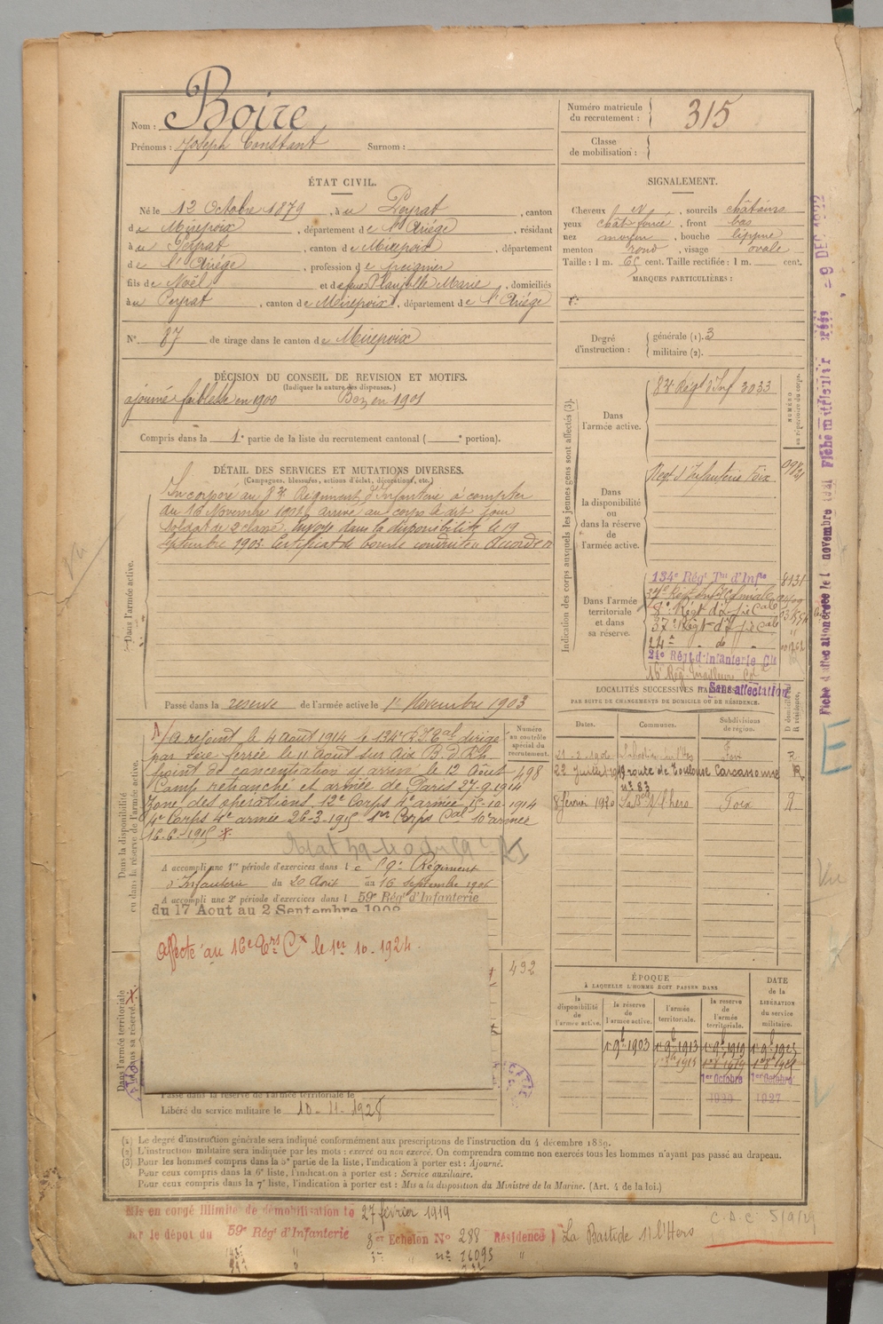 | Boire | Joseph Constant | FOIX | 1 R 456 | 1899 | Peyrat (Le) | Peyrat (Le) | 315 |