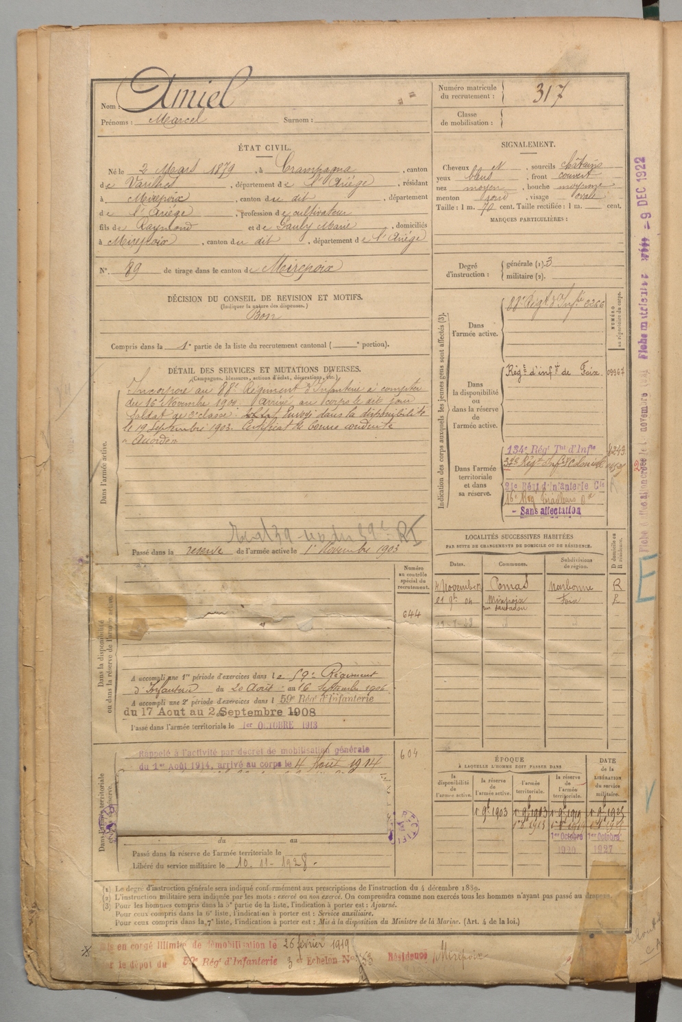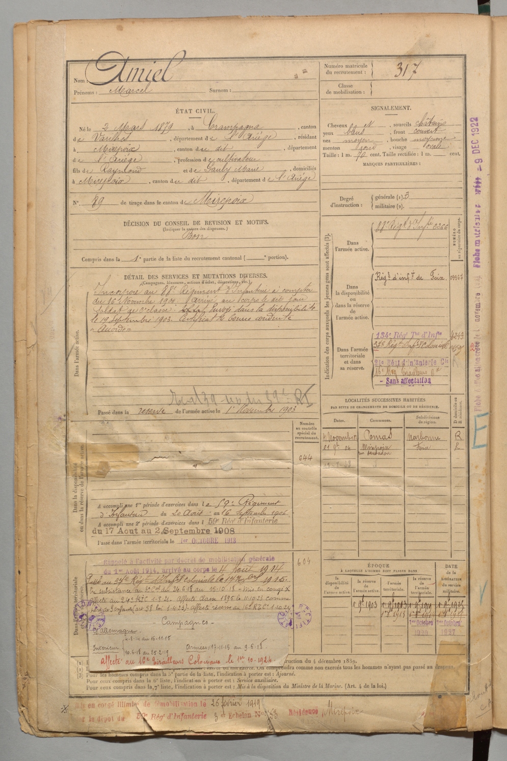 | Amiel | Marcel | FOIX | 1 R 456 | 1899 | Crampagna | Mirepoix | 317 |