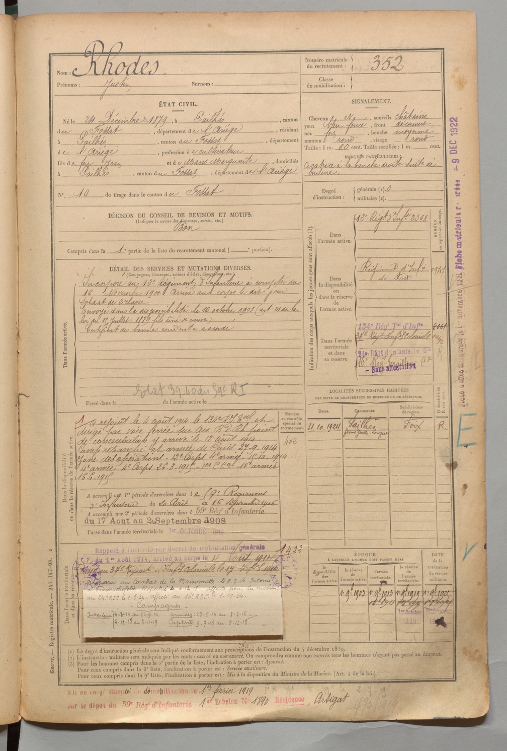 | Rhodes | Justin | FOIX | 1 R 456 | 1899 | Pailhès | Pailhès | 352 |