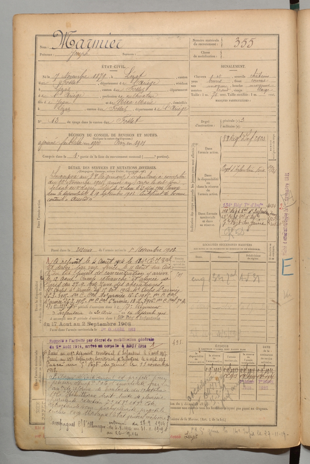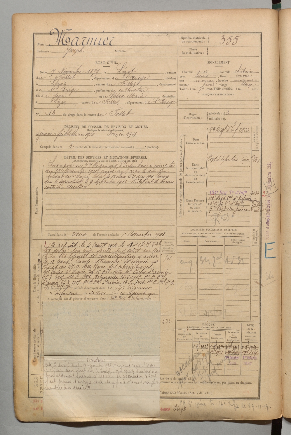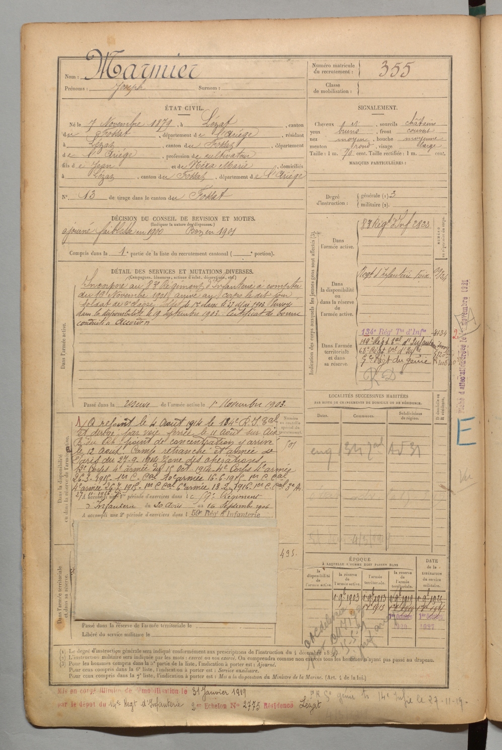 | Marmier | Joseph | FOIX | 1 R 456 | 1899 | Lézat-sur-Lèze | Lézat-sur-Lèze | 355 |