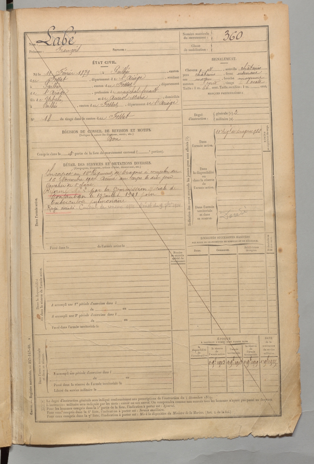 | Labé | François | FOIX | 1 R 456 | 1899 | Pailhès | Pailhès | 360 |
