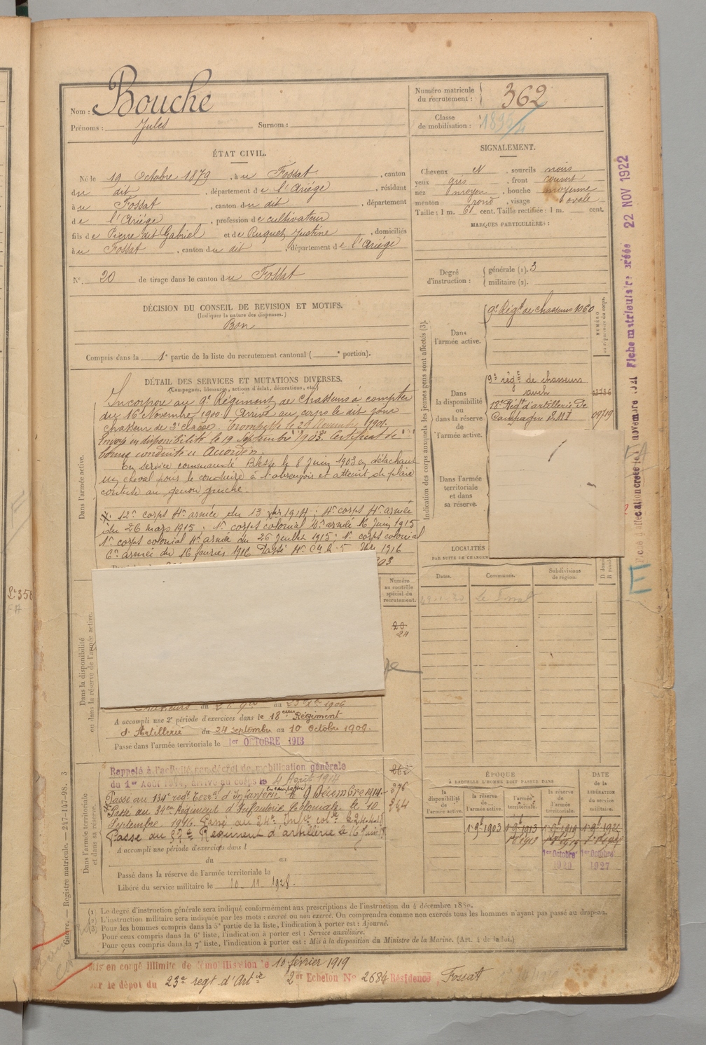 | Bouche | Jules | FOIX | 1 R 456 | 1899 | Fossat (Le) | Fossat (Le) | 362 |