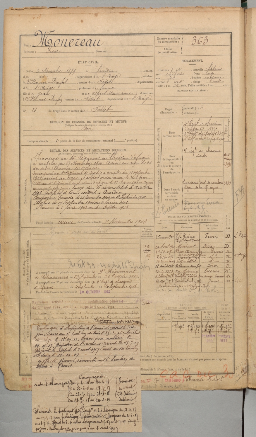 | Monereau | Pierre | FOIX | 1 R 456 | 1899 | Saverdun | Durfort | 363 |