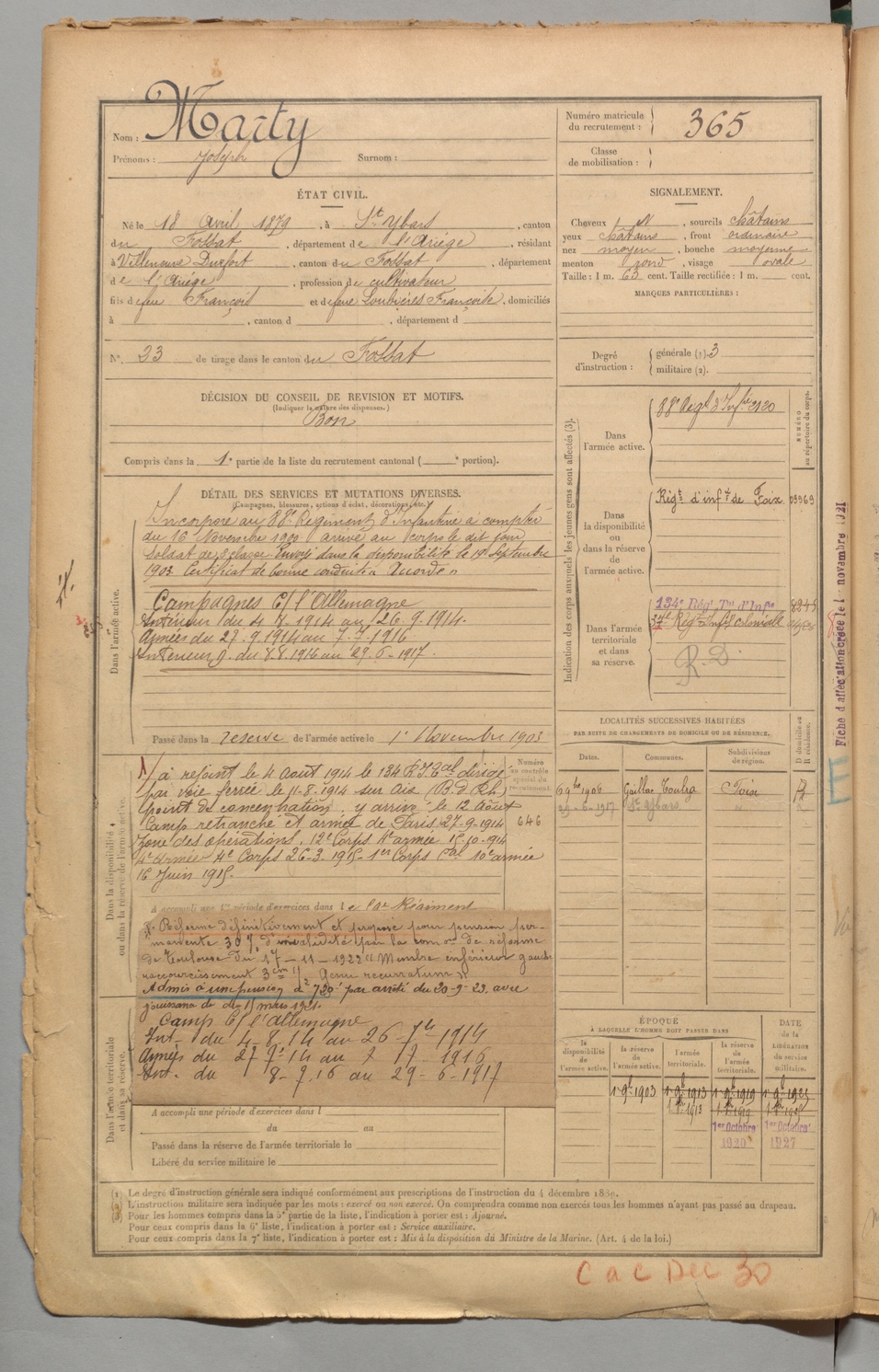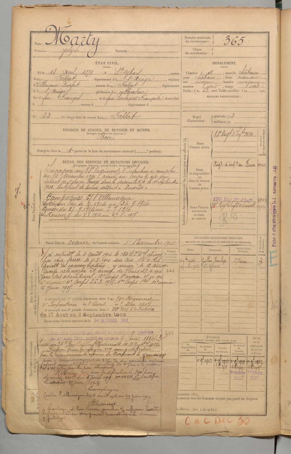 | Marty | Joseph | FOIX | 1 R 456 | 1899 | Saint-Ybars | Durfort | 365 |