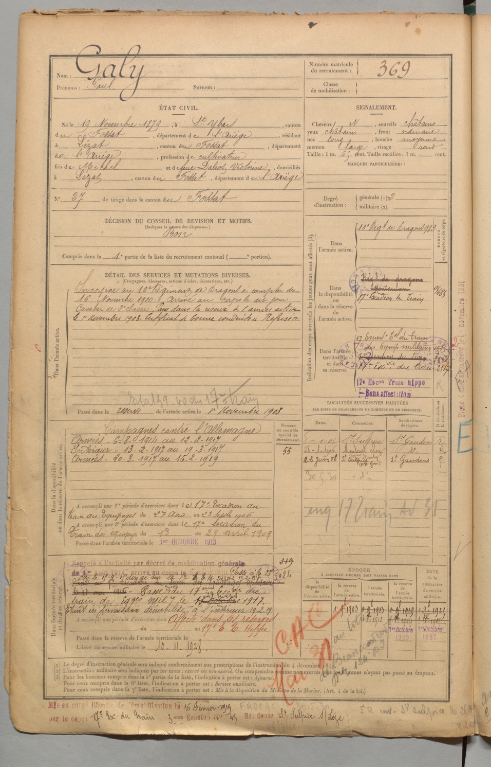 | Galy | Paul | FOIX | 1 R 456 | 1899 | Saint-Ybars | Lézat-sur-Lèze | 369 |