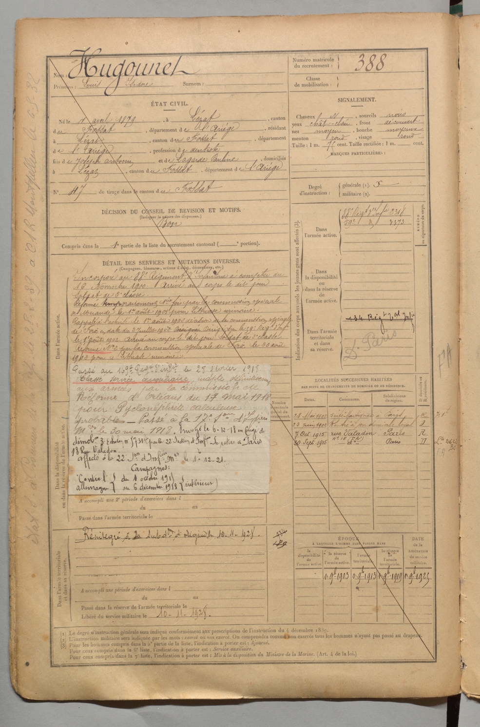 | Hugounet | Louis Isidore | FOIX | 1 R 456 | 1899 | Lézat-sur-Lèze | Lézat-sur-Lèze | 388 |