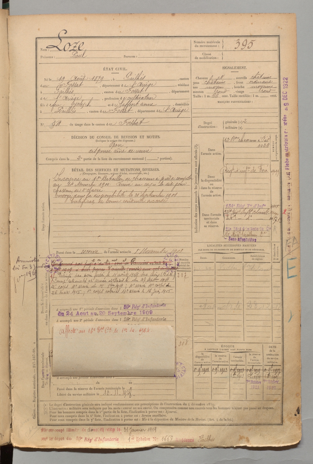 | Loze | Paul | FOIX | 1 R 456 | 1899 | Pailhès | Pailhès | 395 |