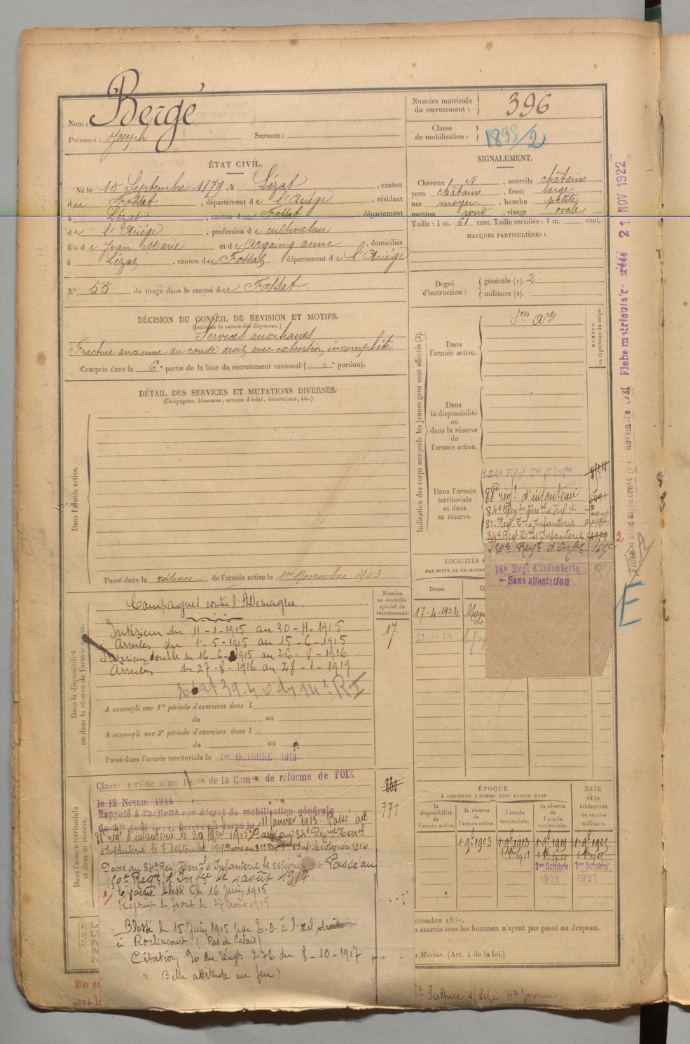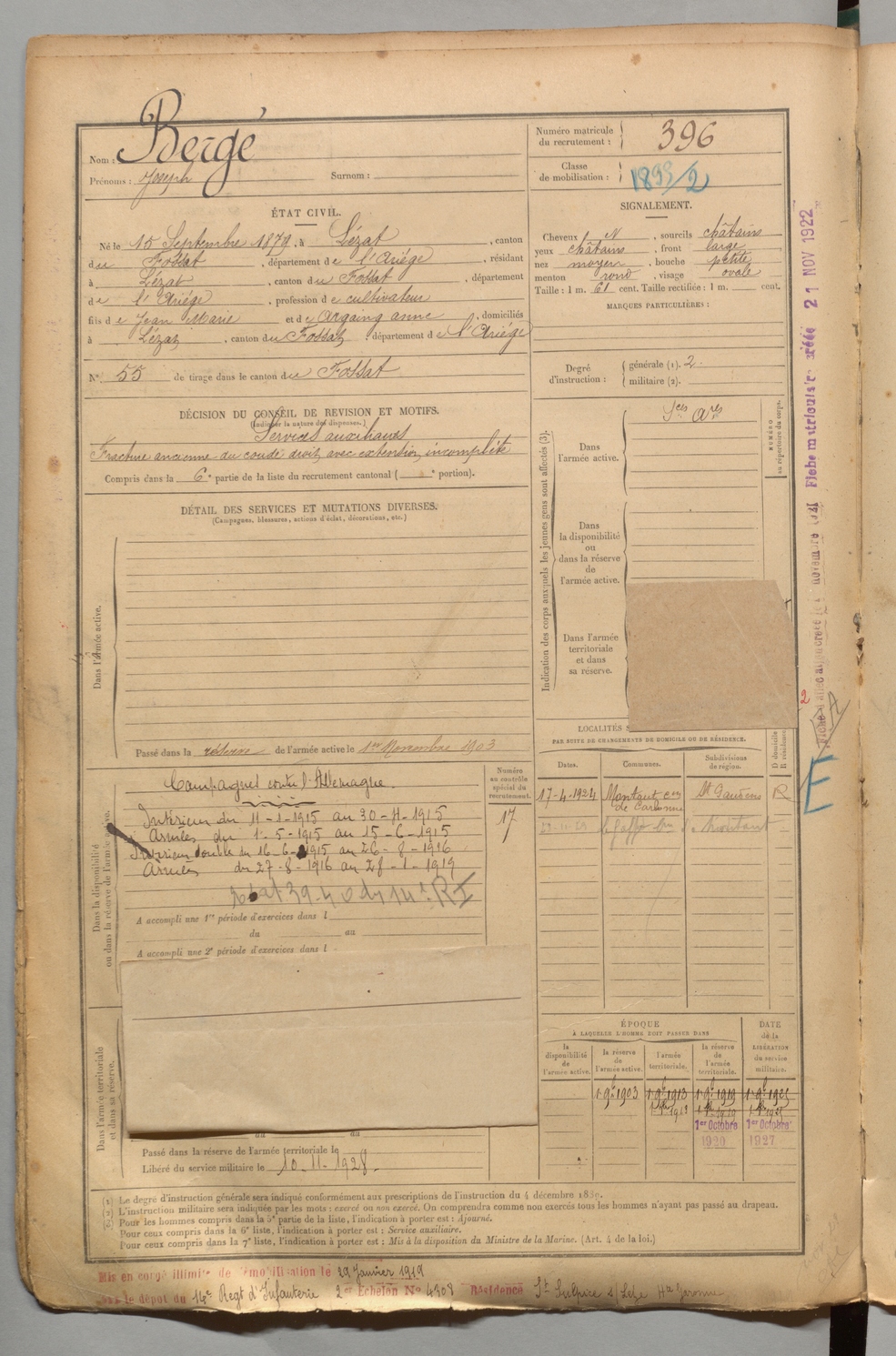 | Bergé | Joseph | FOIX | 1 R 456 | 1899 | Lézat-sur-Lèze | Lézat-sur-Lèze | 396 |