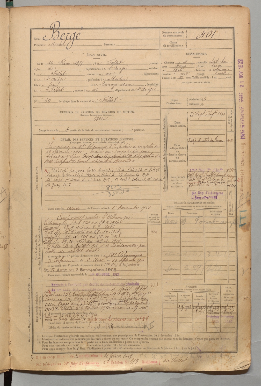 | Bergé | Michel | FOIX | 1 R 456 | 1899 | Fossat (Le) | Fossat (Le) | 401 |