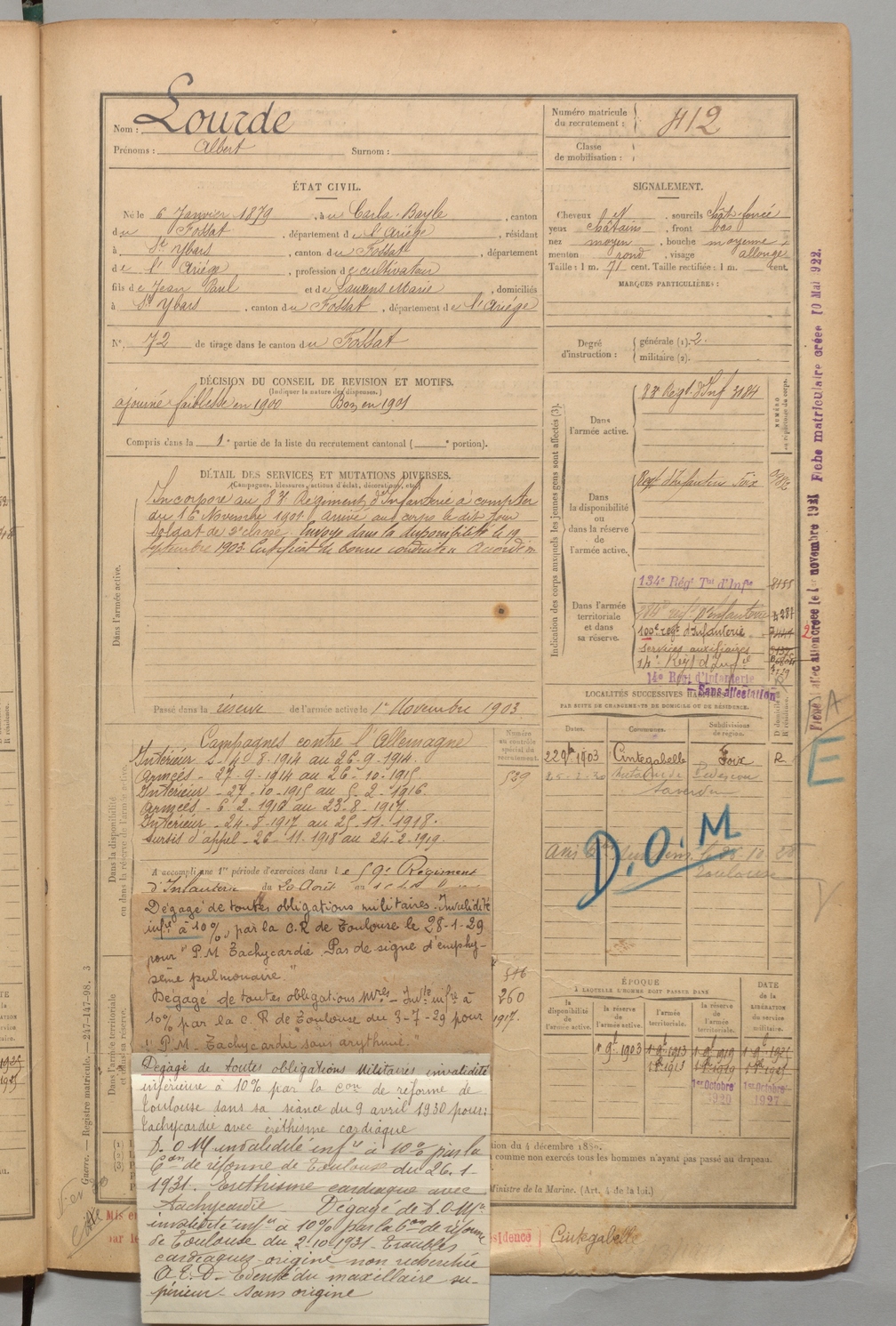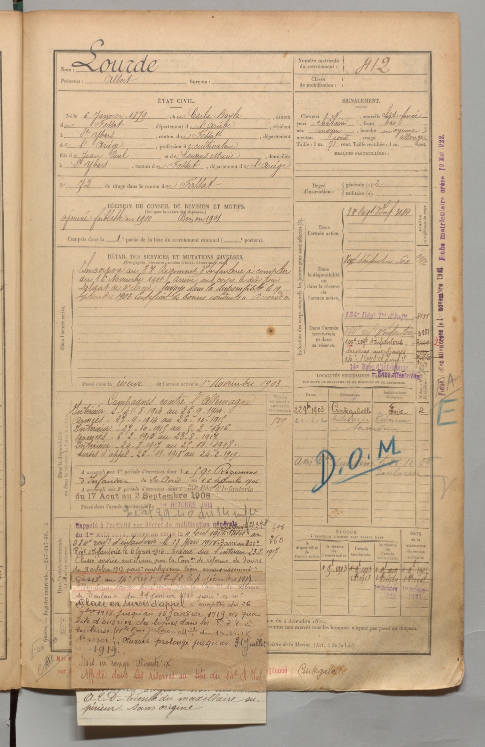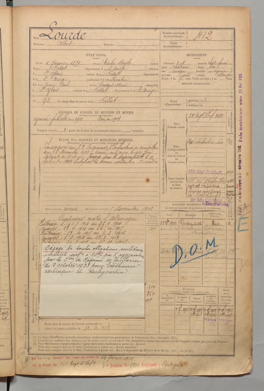 | Lourde | Albert | FOIX | 1 R 456 | 1899 | Carla-Bayle (Le) | Saint-Ybars | 412 |