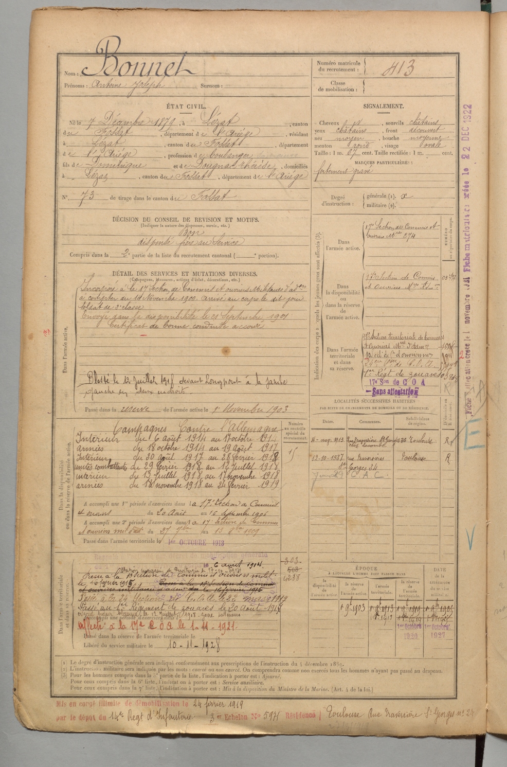 | Bonnet | Antoine Joseph | FOIX | 1 R 456 | 1899 | Lézat-sur-Lèze | Lézat-sur-Lèze | 413 |