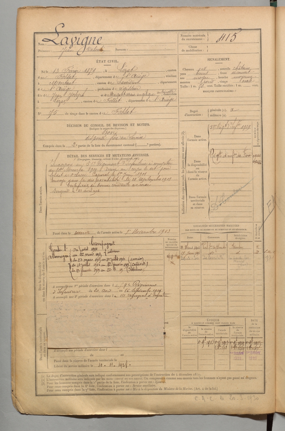 | Lavigne | Jean Valentin | FOIX | 1 R 456 | 1899 | Lézat-sur-Lèze | Montaut | 415 |