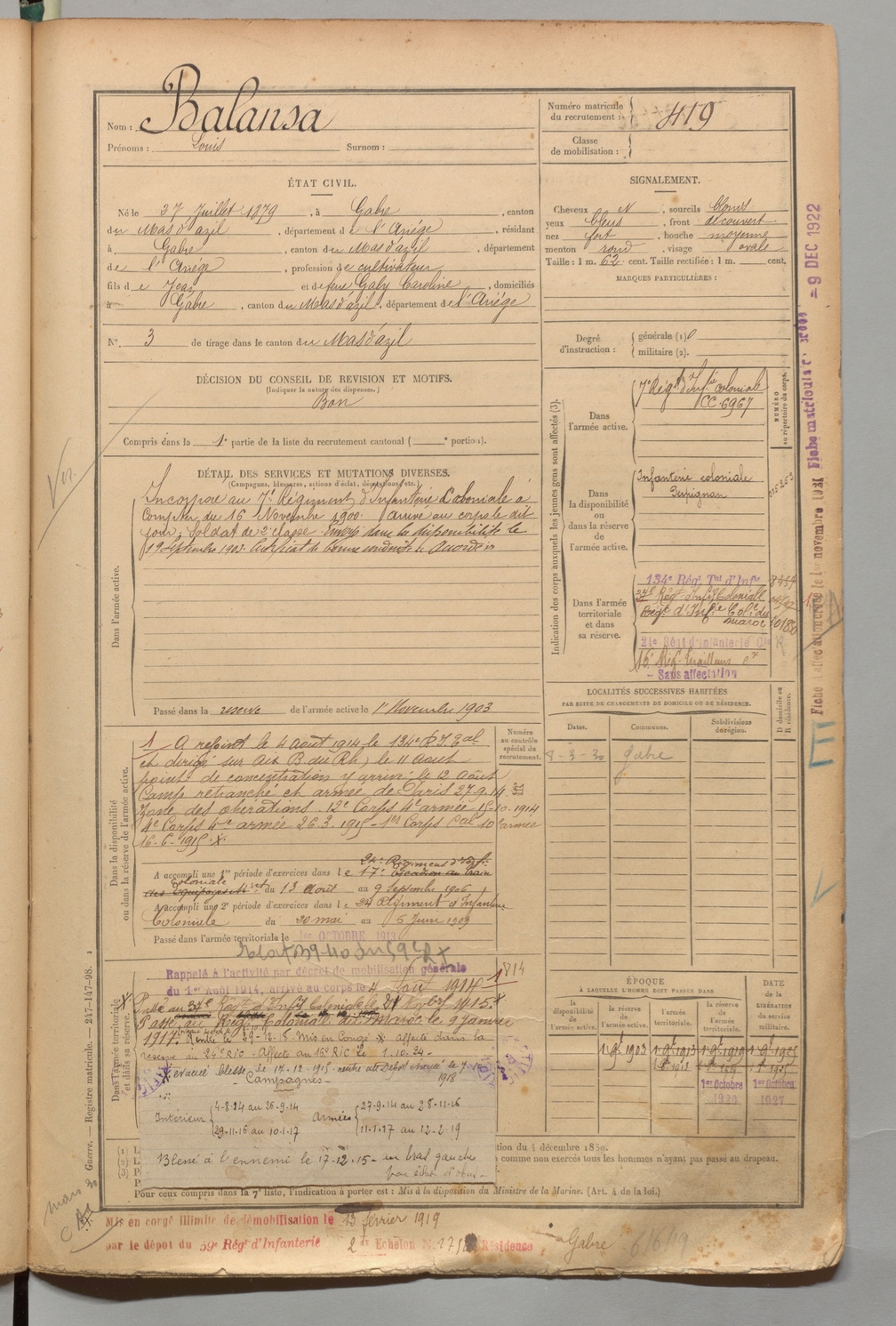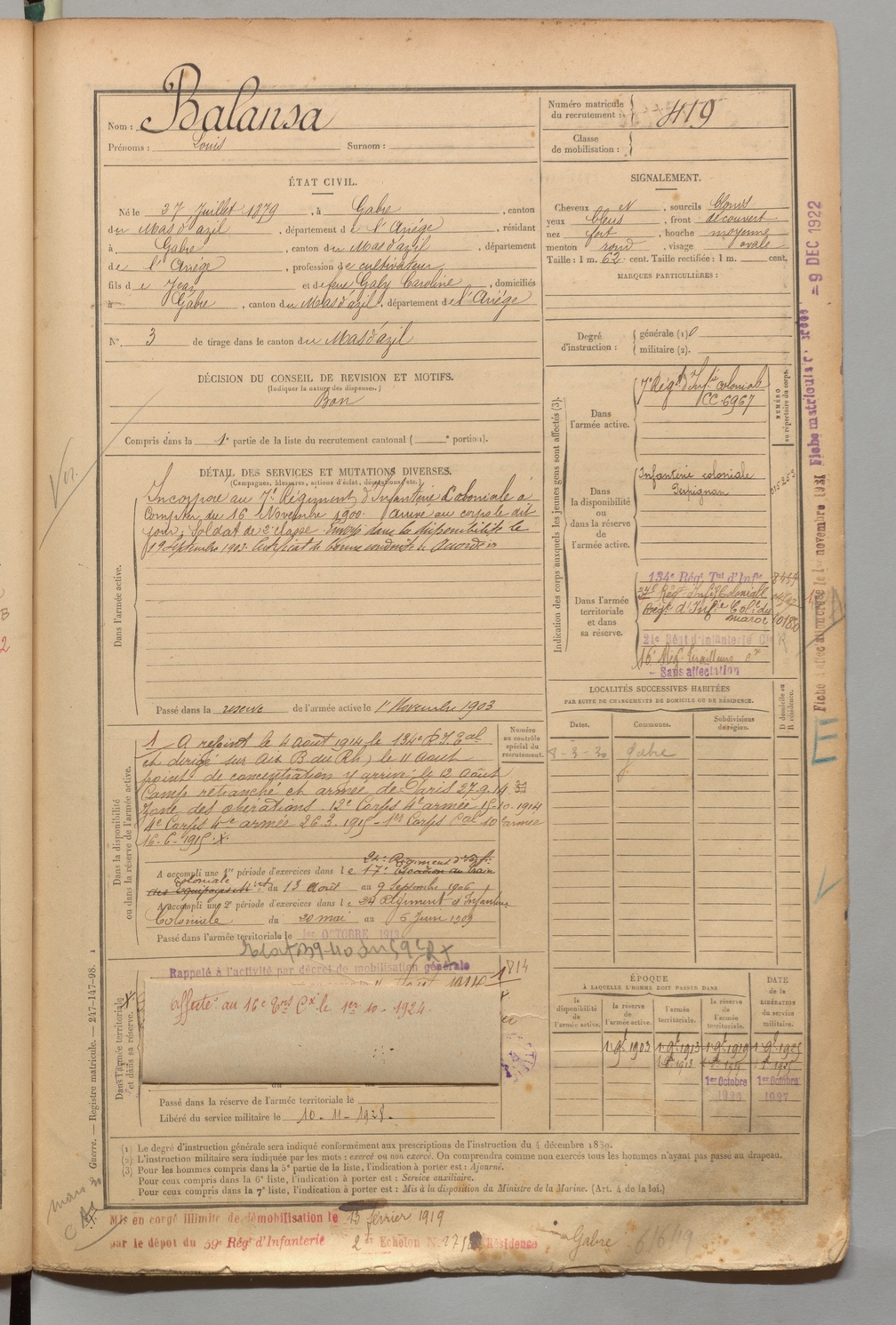 | Balansa | Louis | FOIX | 1 R 456 | 1899 | Gabre | Gabre | 419 |