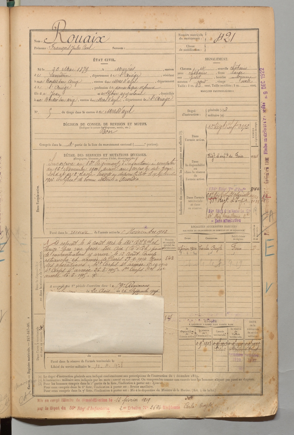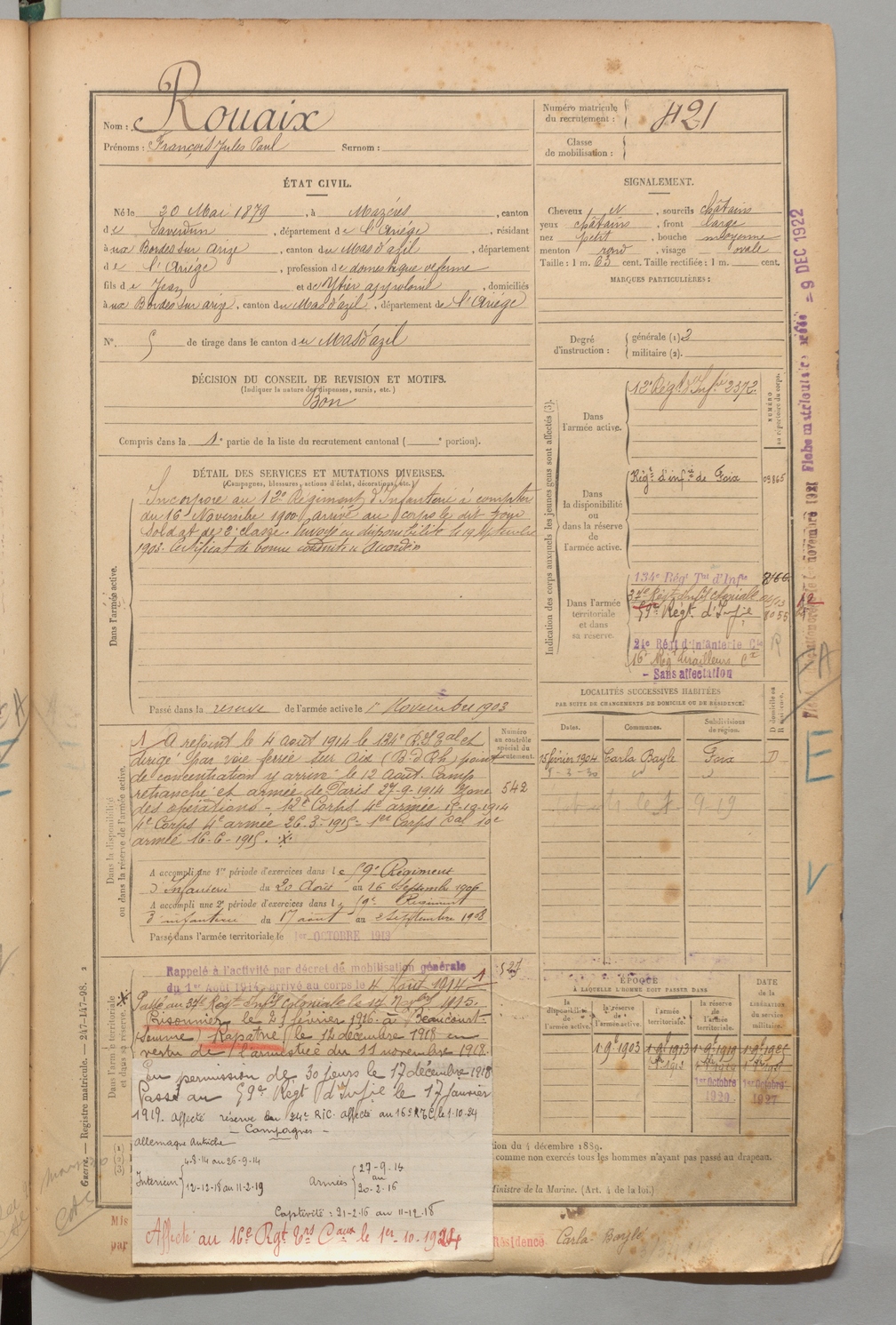 | Rouaix | François Jules Paul | FOIX | 1 R 456 | 1899 | Mazères | Bordes-sur-Arize (Les) | 421 |