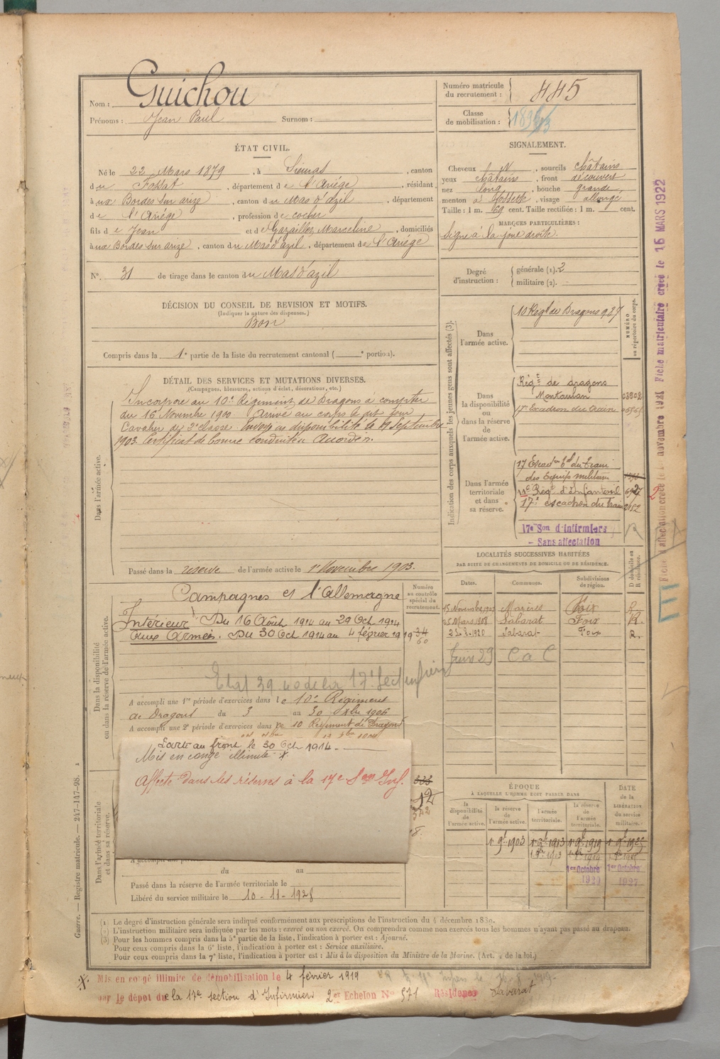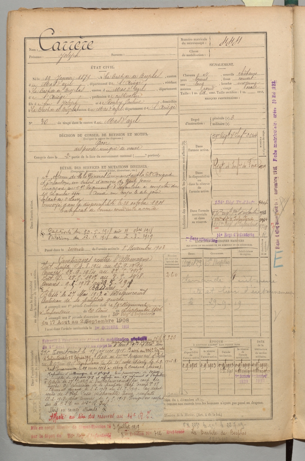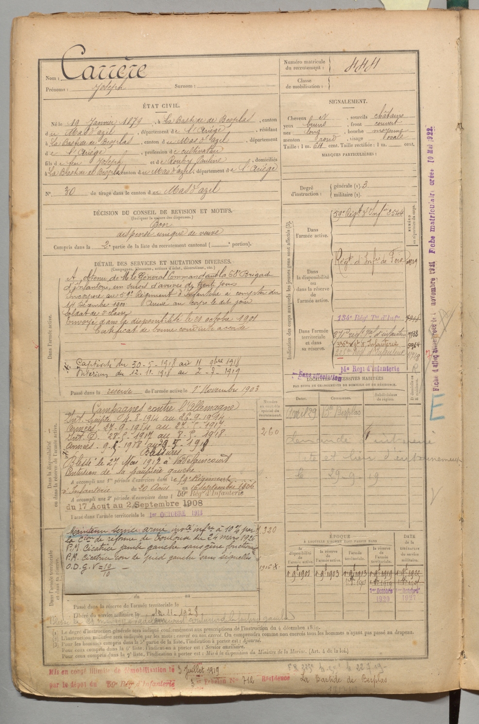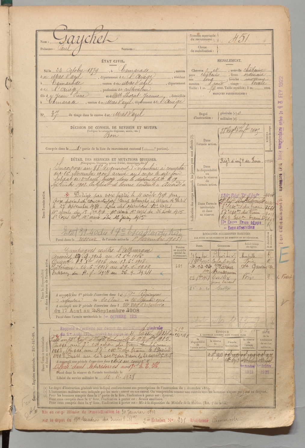 | Gaychet | Paul | FOIX | 1 R 456 | 1899 | Camarade | Camarade | 451 |