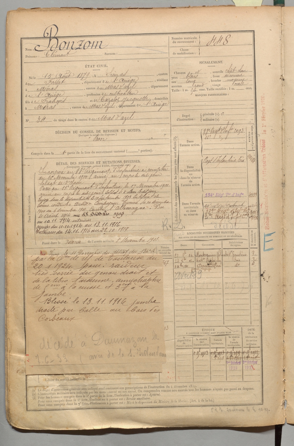 | Bonzom | Clément | FOIX | 1 R 456 | 1899 | Sieuras | Méras | 448 |