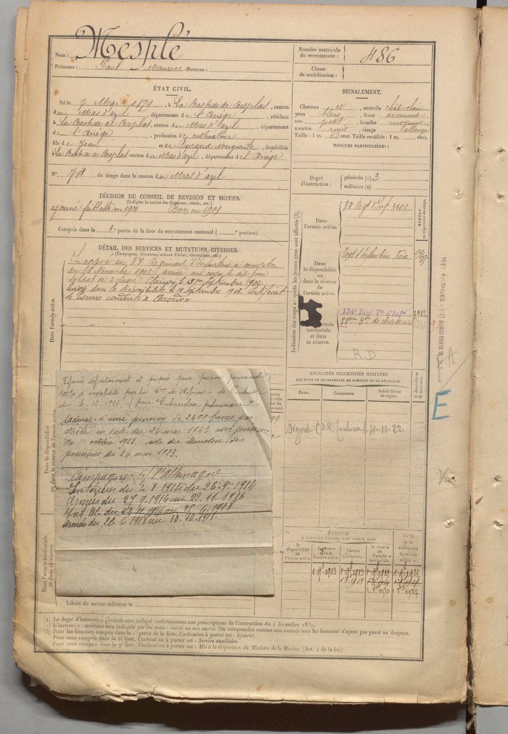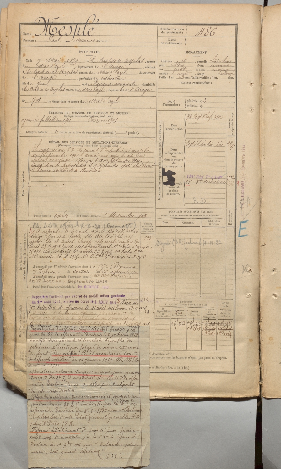 | Mesple | Paul Maurice | FOIX | 1 R 457 | 1899 | Bastide-de-Besplas (La) | Bastide-de-Besplas (La) | 486 |
