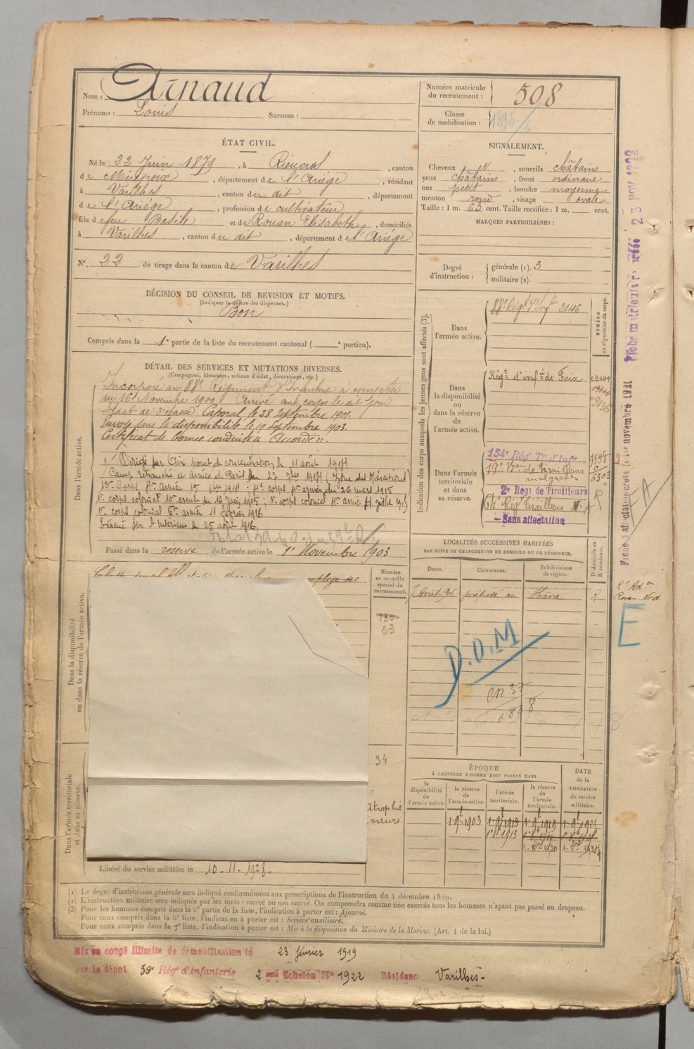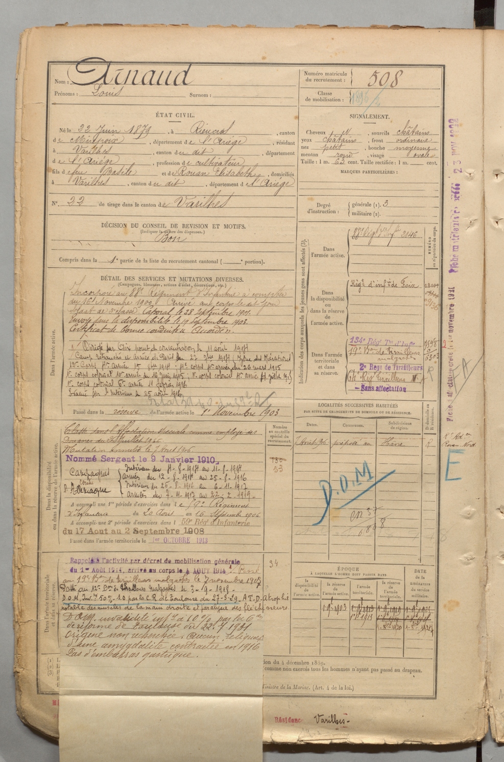 | Arnaud | Louis | FOIX | 1 R 457 | 1899 | Rieucros | Varilhes | 508 |
