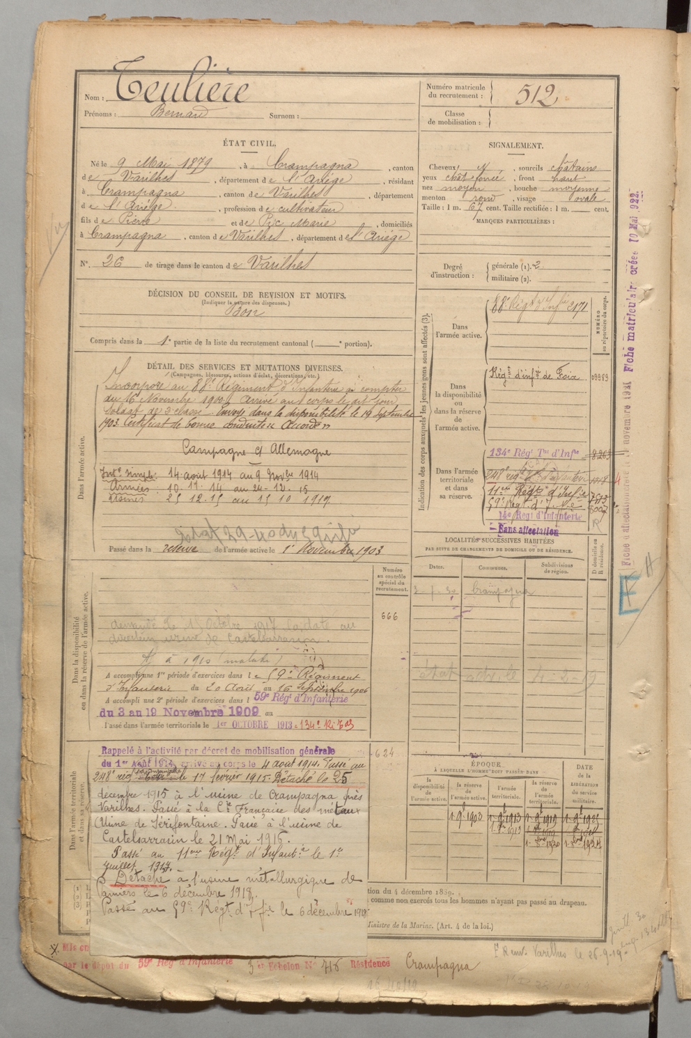 | Teulière | Bernard | FOIX | 1 R 457 | 1899 | Crampagna | Crampagna | 512 |