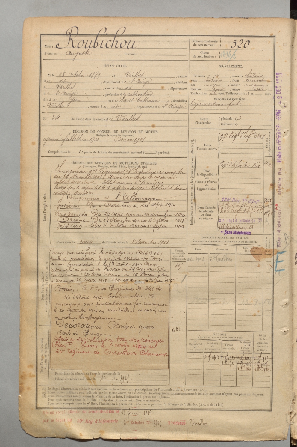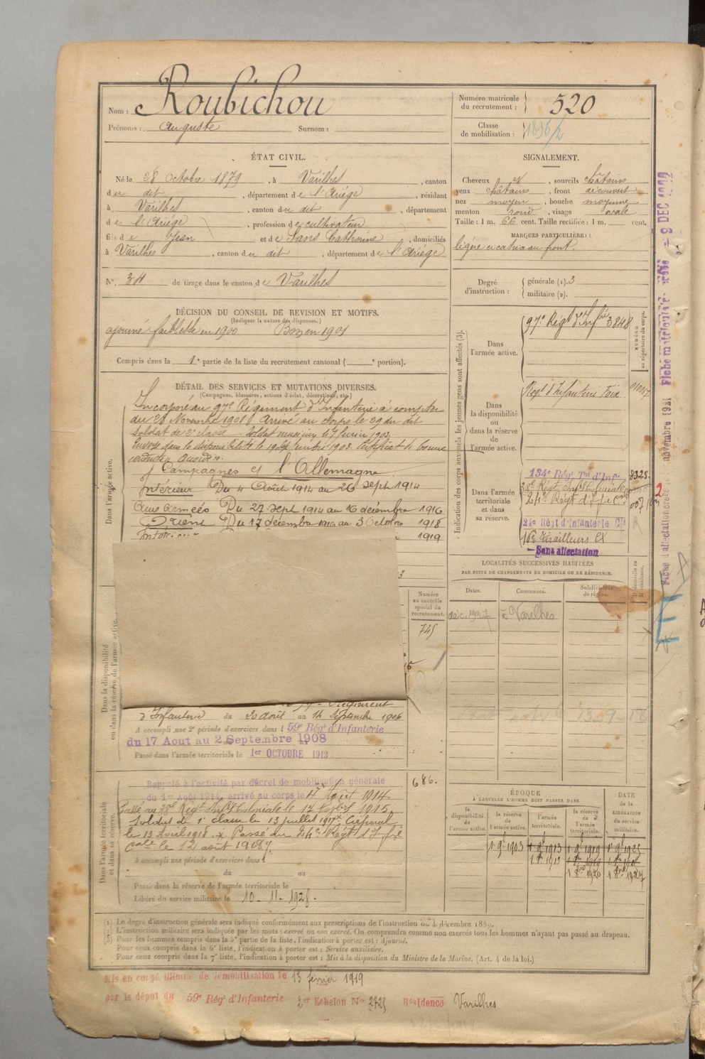 | Roubichou | Auguste | FOIX | 1 R 457 | 1899 | Varilhes | Varilhes | 520 |