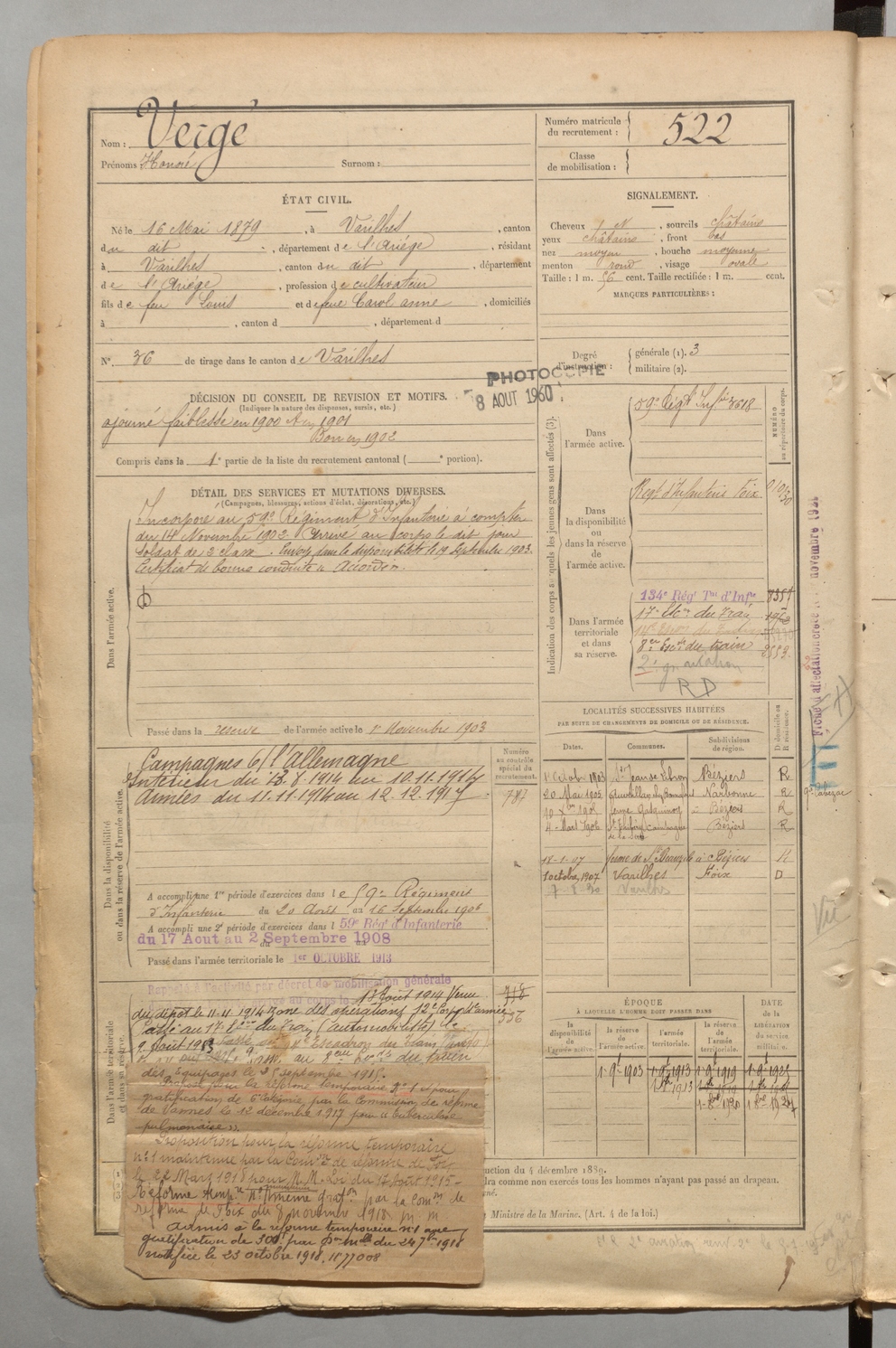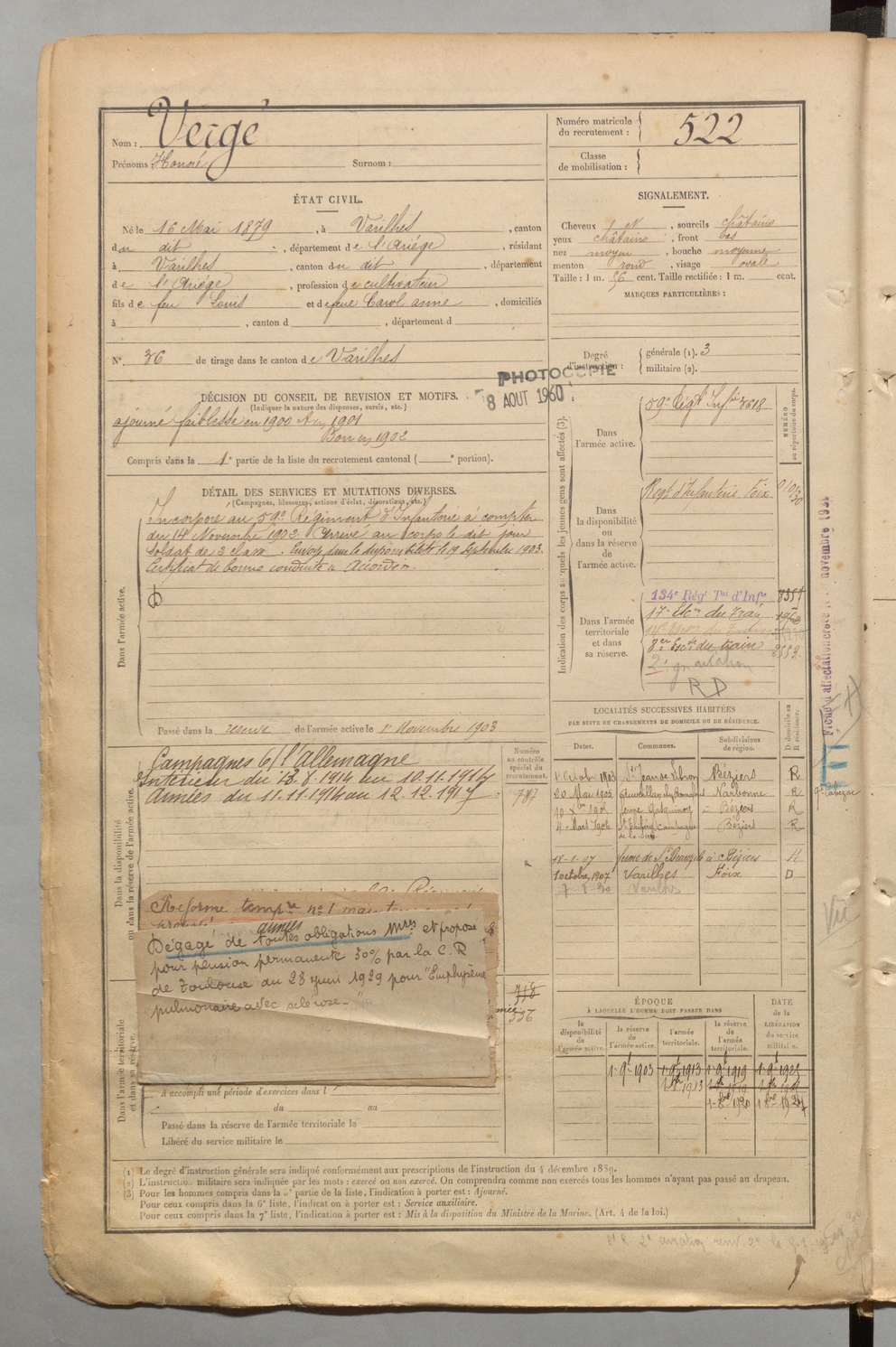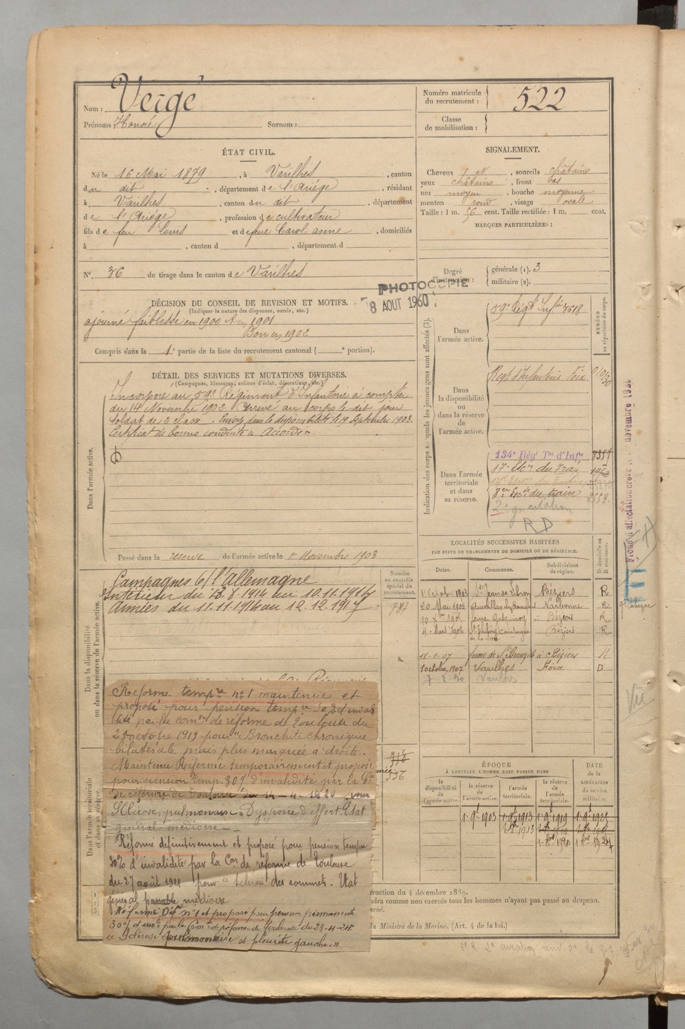 | Vergé | Honoré | FOIX | 1 R 457 | 1899 | Varilhes | Varilhes | 522 |