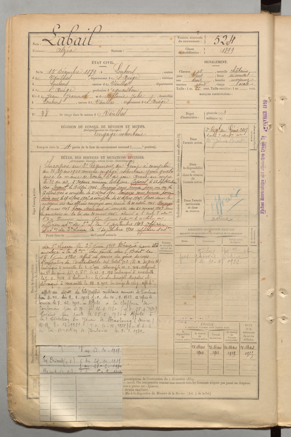 | Labail | Alzéa | FOIX | 1 R 457 | 1899 | Loubens | Loubens | 524 |