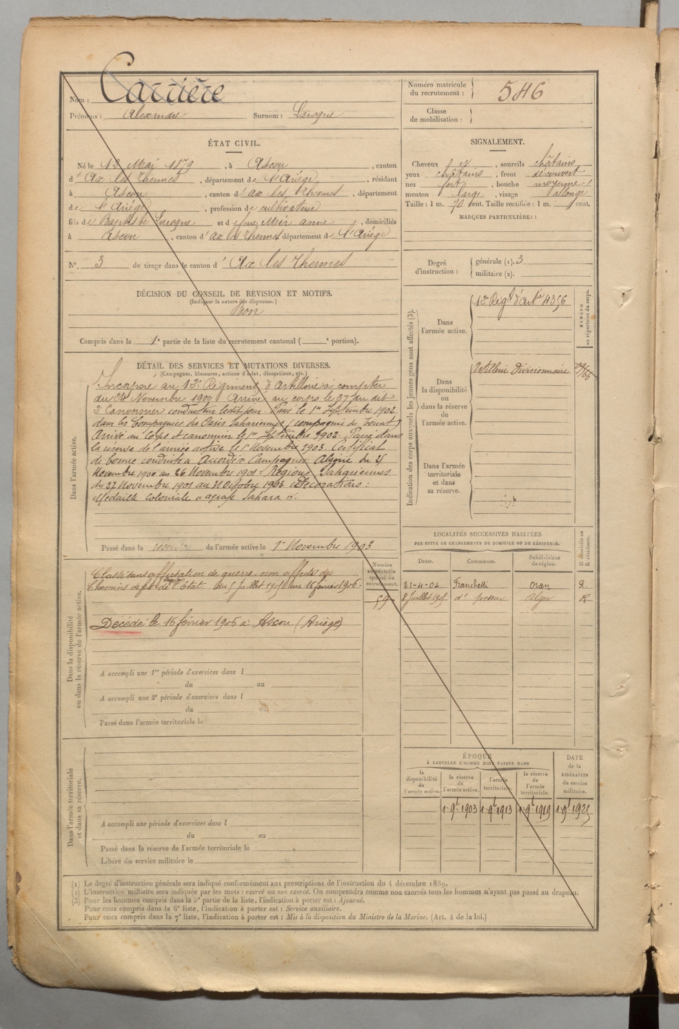 | Carrière | Alexandre dit Laroque | FOIX | 1 R 457 | 1899 | Ascou | Ascou | 546 |